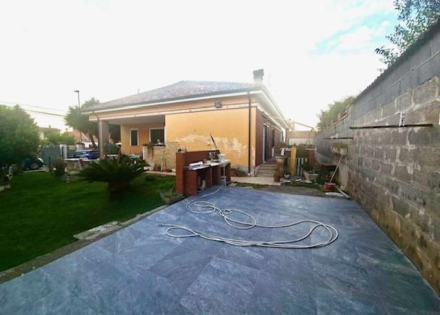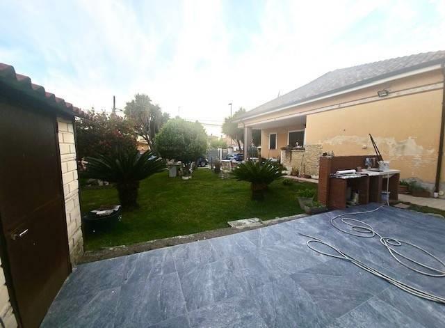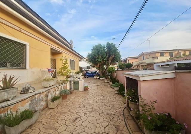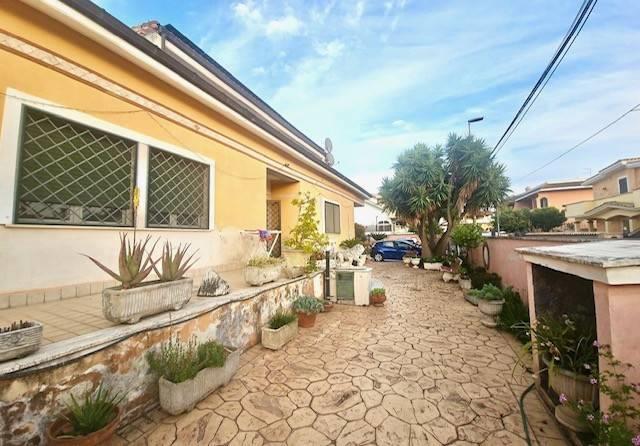 Pomezia, località' Torvaianica Alta, villa indipendente, su unico livello, divisibile per due famiglie con grande giardino. L'immobile, di grande metratura, è composto da ampio salone con uscita al giardino, quattro camere da letto, cucina abitabile con accesso al giardino, ampio tinello, doppi servizi, ampia cantina, giardino di 650 mq circa e vari posti auto.