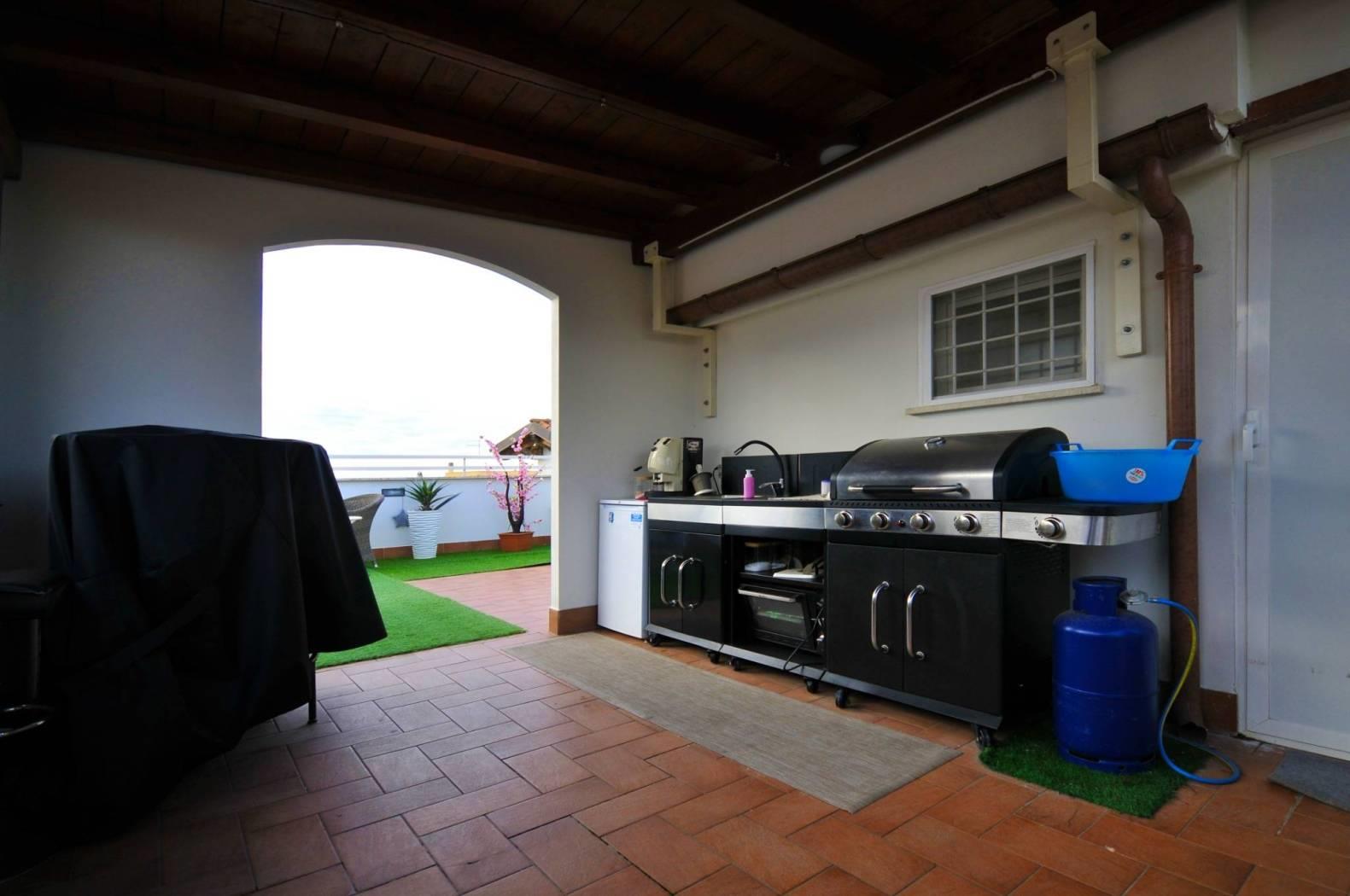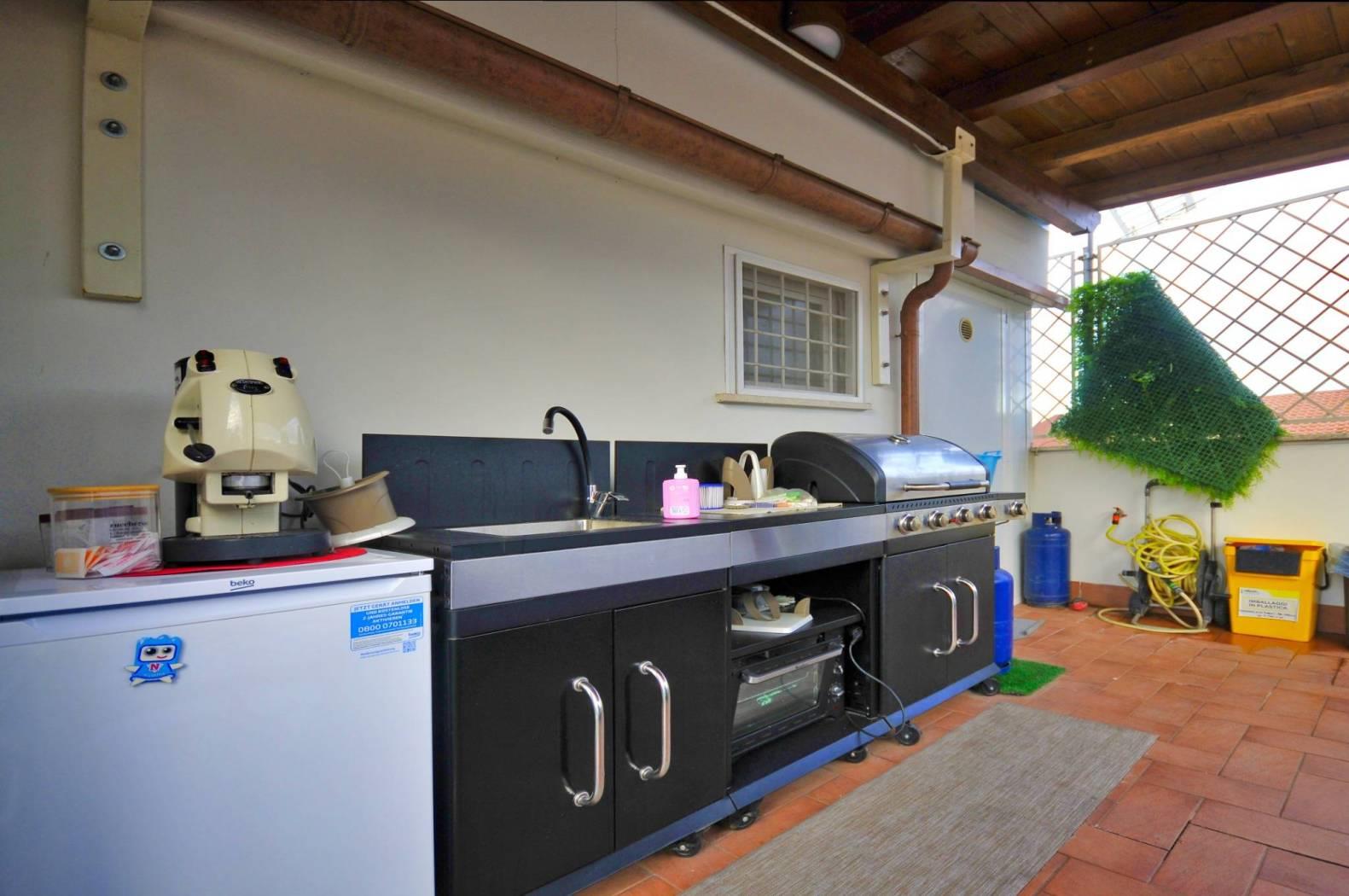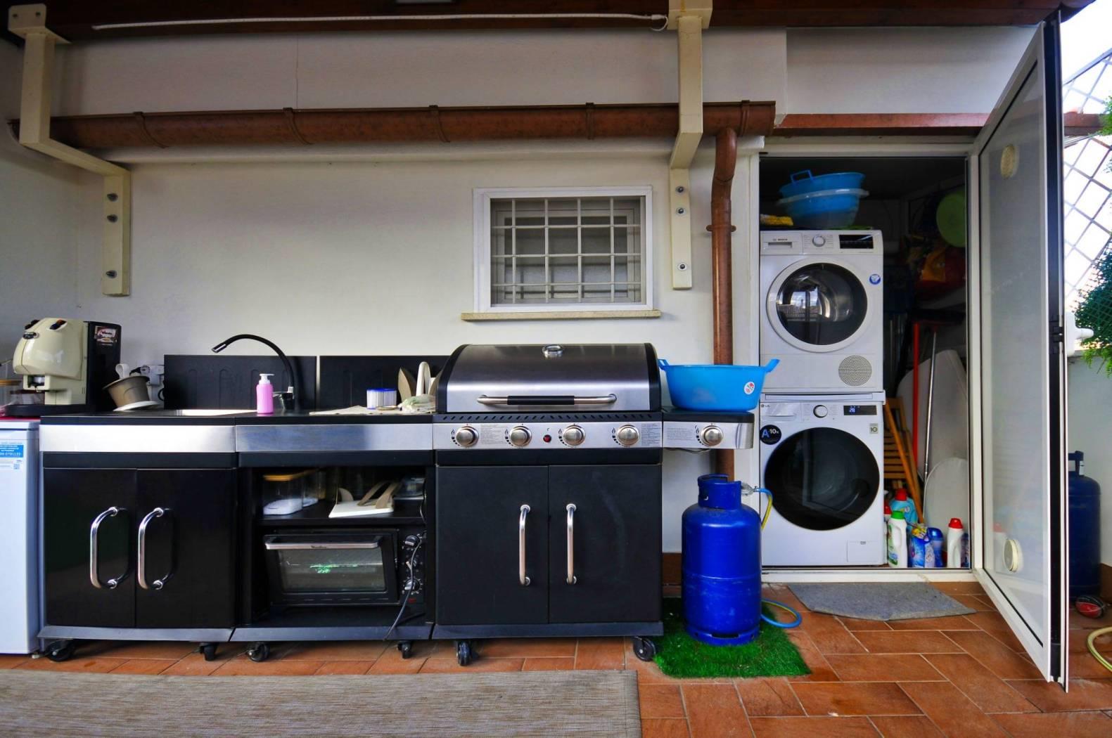 Piano superiore: suggestiva stanza adibita a cinema, ideale anche come zona relax o studio, e splendida terrazza di circa 30 mq perfetta per momenti conviviali, dotata di barbecue.