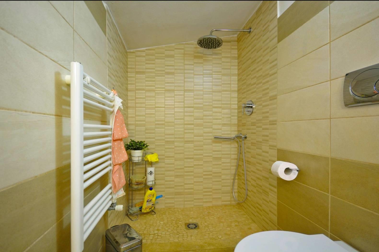 Piano principale: luminoso soggiorno con angolo cottura e accesso al balcone, due camerette con ampio balcone, camera matrimoniale, doppi servizi finestrati entrambi con box doccia.