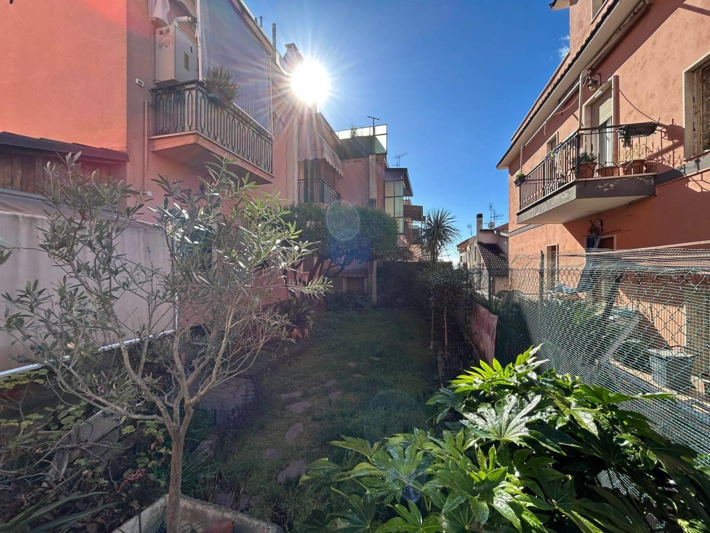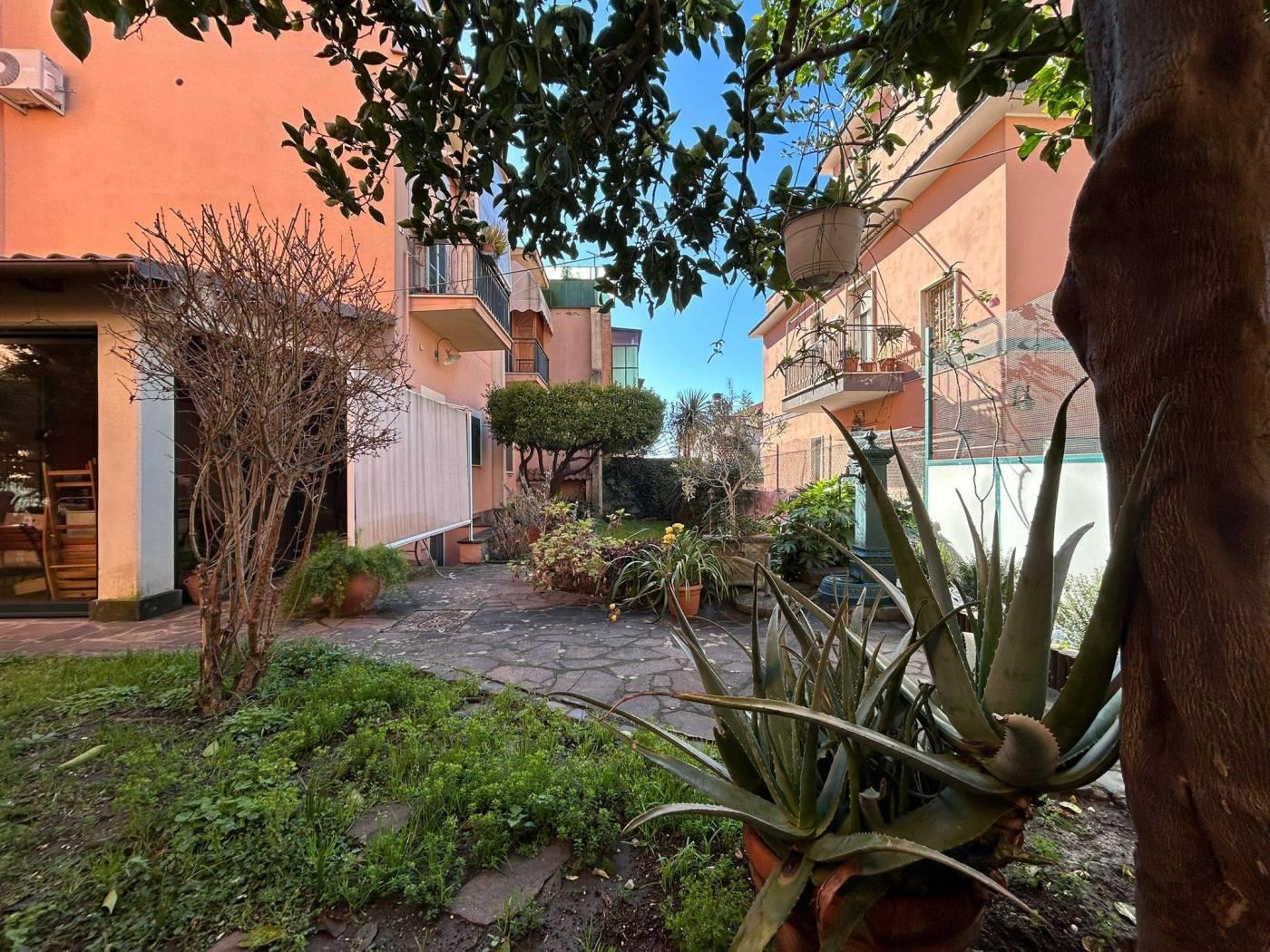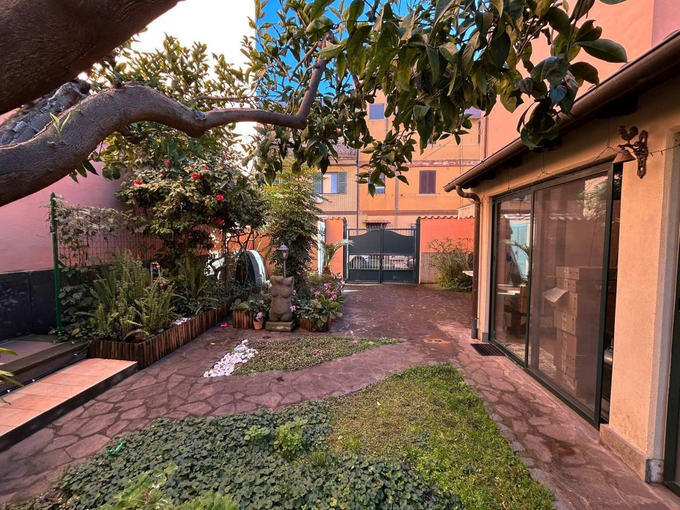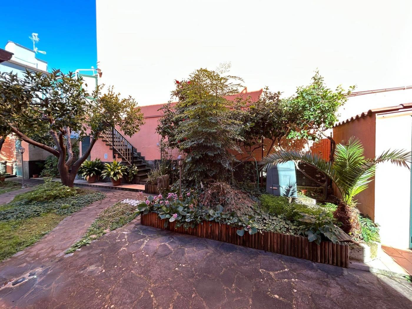 La proprietà è circondata da un giardino perimetrale di circa 150 mq, in parte mattonato e in parte a prato, dotato di diversi ripostigli utili per ogni esigenza.