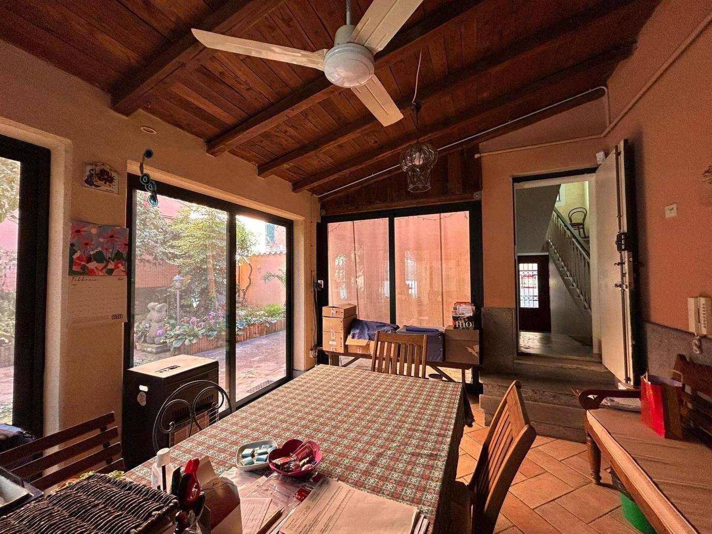 Al piano terra troviamo una Veranda chiusa con vetrate (circa 20 mq) con uscita sul giardino, una stanza adiacente (uso studio), e un bagno finestrato con doccia.
