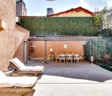 Parioli - Beautiful Villa surrounded by greenery, in perfect condition of maintenance, on three levels of 350 square meters with beautiful garden of 160 square meters with terracotta floor and beautiful terrace of 20 square meters, consisting of entrance hall, large living room with large windows overlooking the garden, dining room with French window on the garden, large fitted kitchen, laundry, 4 bedrooms including a single, 3 bathrooms and service area with kitchen, wardrobe, bedroom and bathroom. Parking space. This information and floor plans are only indicative and do not constitute contractual elements.