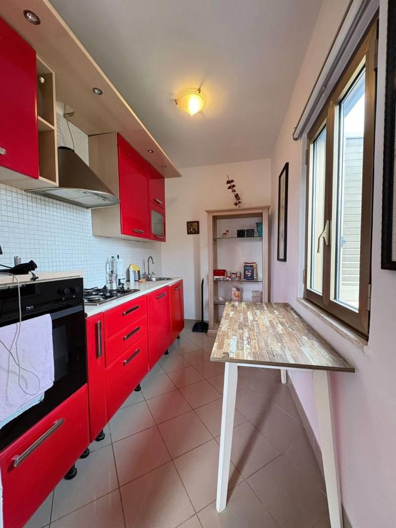 Gli spazi interni (circa 51 mq) sono ben distribuiti e comprendono: ingresso, cucina abitabile, ampio salone, camera matrimoniale, bagno finestrato, completo di tazza/bidet e box doccia.