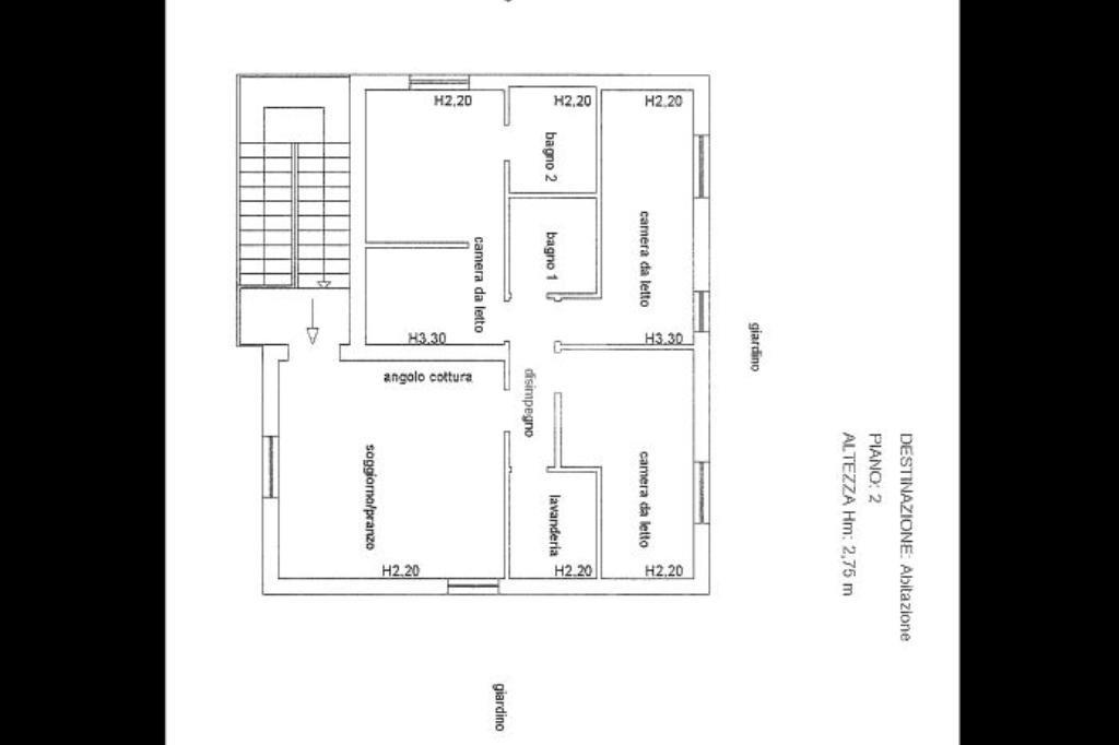 Primo Piano: mansardato comodamente vivibile con altezza dei soffitti alla giusta sommità, in cui il punto più alto è di 3,00 m, mentre la parte più bassa ha l’altezza di 2.00 metri. Suddiviso in cucina abitabile, corridoio. Lavanderia, 2 camere da legno, bagno cieco con doccia e camera matrimoniale con cabina armadio e bagno privato. Il piano è stato ristrutturato completamente nel 2015 e presenta finiture moderne:,pavimenti in grés porcellanato, infissi in pvc doppio vetro vasistas.