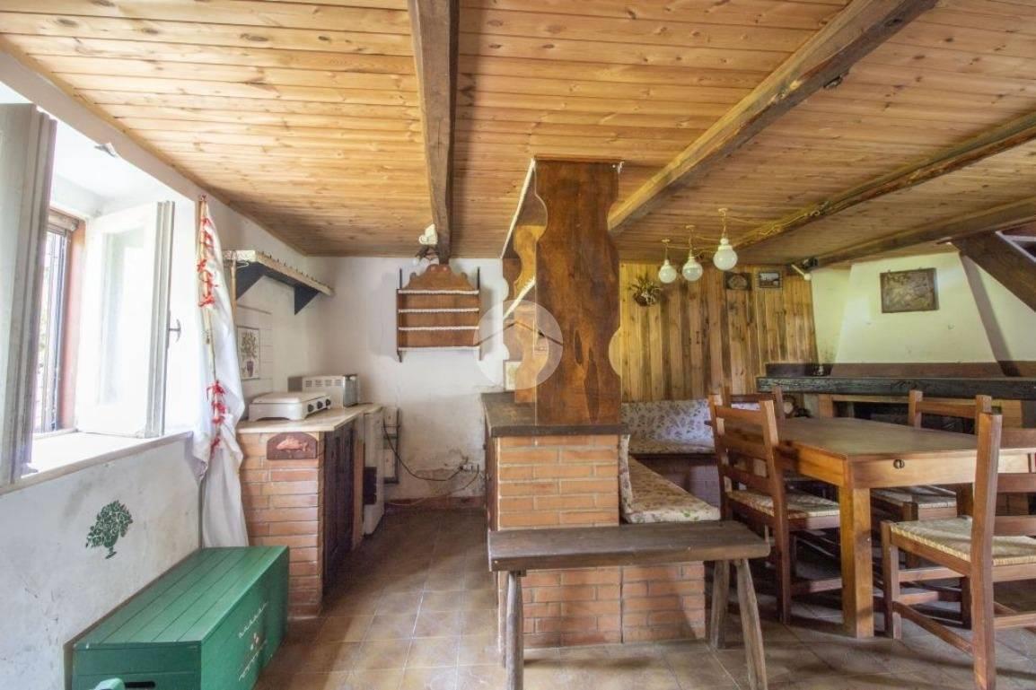 SECONDA CASA: A pochi metri dalla prima casa. . All’esterno vi è il portico di 14 mq rifinito con colonne dove potersi riunire nelle sere d’estate. Internamente sviluppata su 2 livelli e ha una superficie calpestabile di 54 mq. Superato l’ ingresso al piano terra troviamo: la sala da pranzo con camino, angolo cottura e bagno con doccia a pavimento. La scala in legno conduce al primo piano dove troviamo la camera da letto matrimoniale con il camino un valore aggiunto e, da qui tramite una porta finestra si raggiunge la terrazza che misura 23 mq con vista panoramica sulle colline Sabine.
