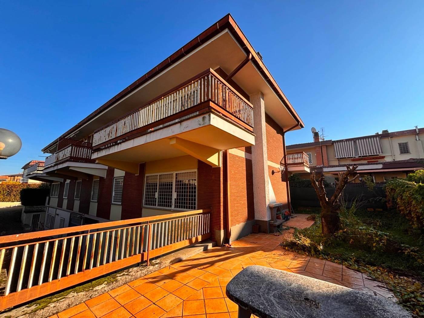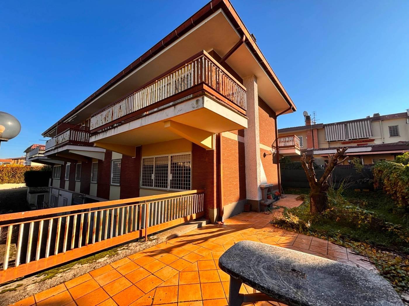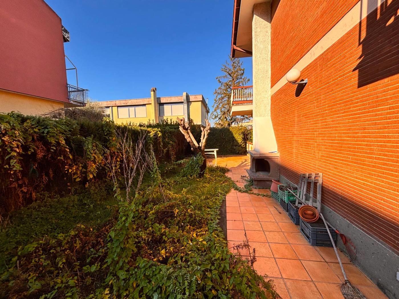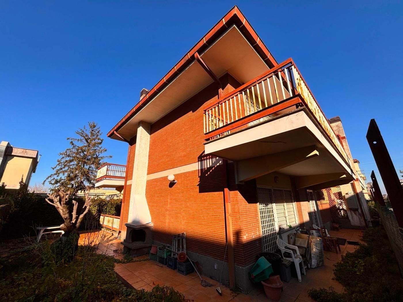 La New G&CO immobiliare propone in vendita un porzione di costruzione Terra-tetto bi-familiare di ampia metratura e ampi spazi esterni. Il fabbricato si sviluppa su tre livelli S1-T-1, al pian terreno ci accoglie un ampio ingresso di rappresentanza, sul lato sinistro si accede al salone doppio illuminato da ampie vetrate, zona pranzo riservata e comoda cucina abitabile. Dall'ingresso a destra troviamo l'ingresso di servizio che ci porta al ripostiglio, bagno secondo accesso alla cucina e alla scala a chiocciola che porta al piano S1. Specifichiamo che il piano S1 è di fatto come un piano terra, in effetti e possibile accedervi dall'esterno in quanto la parte antistante è sbancata e mattonata, questo spazio permette l'accesso sia all'abitazione che al box comunicante con casa. Il piano S1 è composto da un disimpegno antistante la scala interna, uno studio e un ampio salone con camino, inoltre a disposizione del piano troviamo un comodo bagno. Tornando al pian terreno, dall'ingresso di rappresentanza possiamo salire comodamente attraverso una elegante scala al piano primo, questo piano è composto da 3 camere da letto e due bagni, uno dei due bagni ha a disposizione una comoda china doccia in muratura e una vasca. Il piano primo è servito da comodi ed ampi terrazzi piacevolmente illuminati durante tutto l'arco della giornata.