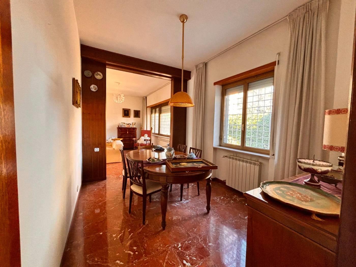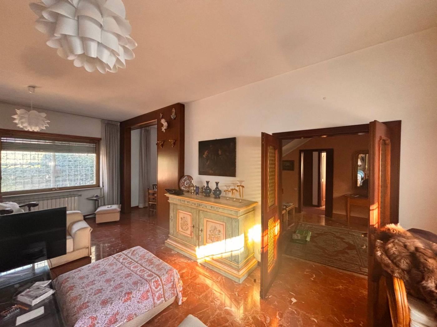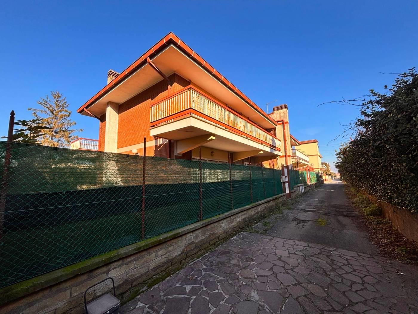 La New G&CO immobiliare propone in vendita un porzione di costruzione Terra-tetto bi-familiare di ampia metratura e ampi spazi esterni. Il fabbricato si sviluppa su tre livelli S1-T-1, al pian terreno ci accoglie un ampio ingresso di rappresentanza, sul lato sinistro si accede al salone doppio illuminato da ampie vetrate, zona pranzo riservata e comoda cucina abitabile. Dall'ingresso a destra troviamo l'ingresso di servizio che ci porta al ripostiglio, bagno secondo accesso alla cucina e alla scala a chiocciola che porta al piano S1. Specifichiamo che il piano S1 è di fatto come un piano terra, in effetti e possibile accedervi dall'esterno in quanto la parte antistante è sbancata e mattonata, questo spazio permette l'accesso sia all'abitazione che al box comunicante con casa. Il piano S1 è composto da un disimpegno antistante la scala interna, uno studio e un ampio salone con camino, inoltre a disposizione del piano troviamo un comodo bagno. Tornando al pian terreno, dall'ingresso di rappresentanza possiamo salire comodamente attraverso una elegante scala al piano primo, questo piano è composto da 3 camere da letto e due bagni, uno dei due bagni ha a disposizione una comoda china doccia in muratura e una vasca. Il piano primo è servito da comodi ed ampi terrazzi piacevolmente illuminati durante tutto l'arco della giornata.
