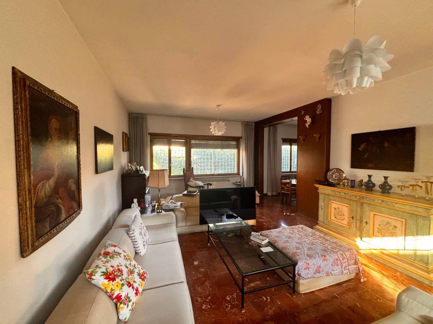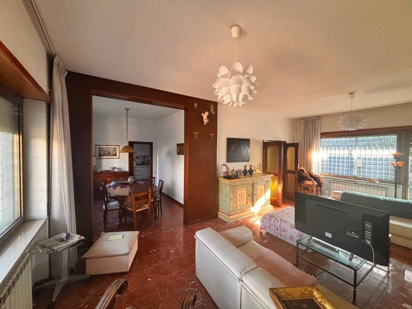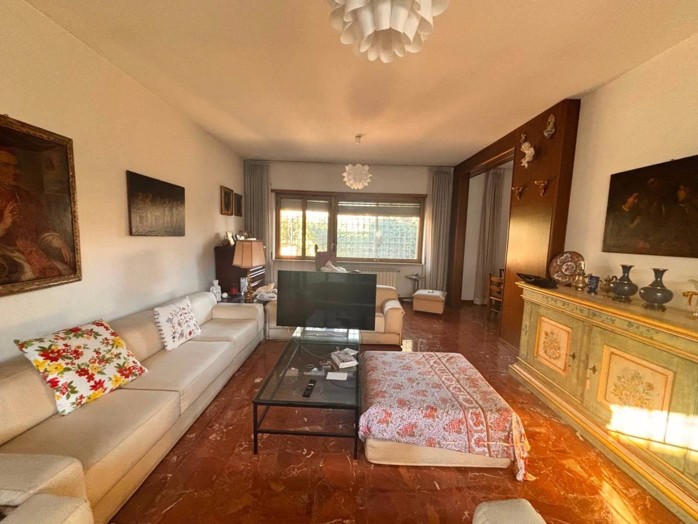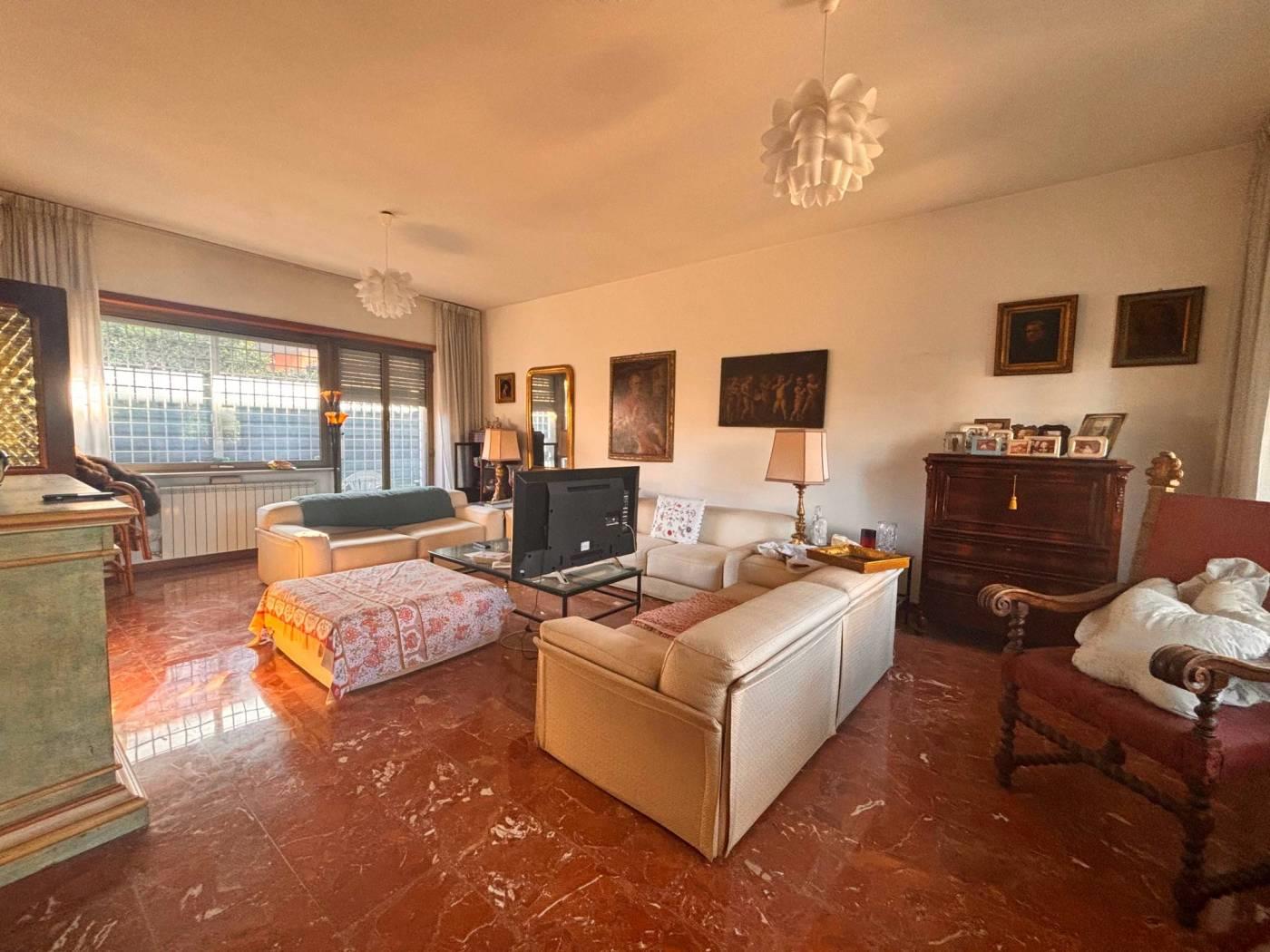 La New G&CO immobiliare propone in vendita un porzione di costruzione Terra-tetto bi-familiare di ampia metratura e ampi spazi esterni. Il fabbricato si sviluppa su tre livelli S1-T-1, al pian terreno ci accoglie un ampio ingresso di rappresentanza, sul lato sinistro si accede al salone doppio illuminato da ampie vetrate, zona pranzo riservata e comoda cucina abitabile. Dall'ingresso a destra troviamo l'ingresso di servizio che ci porta al ripostiglio, bagno secondo accesso alla cucina e alla scala a chiocciola che porta al piano S1. Specifichiamo che il piano S1 è di fatto come un piano terra, in effetti e possibile accedervi dall'esterno in quanto la parte antistante è sbancata e mattonata, questo spazio permette l'accesso sia all'abitazione che al box comunicante con casa. Il piano S1 è composto da un disimpegno antistante la scala interna, uno studio e un ampio salone con camino, inoltre a disposizione del piano troviamo un comodo bagno. Tornando al pian terreno, dall'ingresso di rappresentanza possiamo salire comodamente attraverso una elegante scala al piano primo, questo piano è composto da 3 camere da letto e due bagni, uno dei due bagni ha a disposizione una comoda china doccia in muratura e una vasca. Il piano primo è servito da comodi ed ampi terrazzi piacevolmente illuminati durante tutto l'arco della giornata.