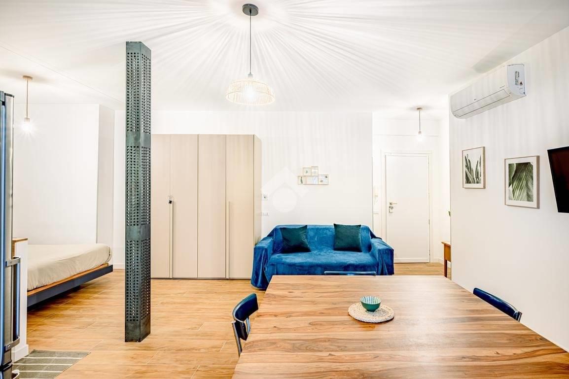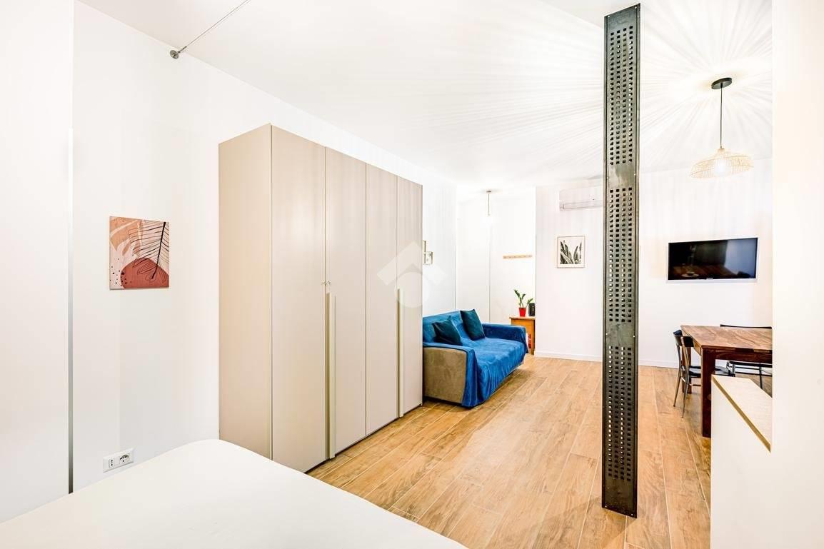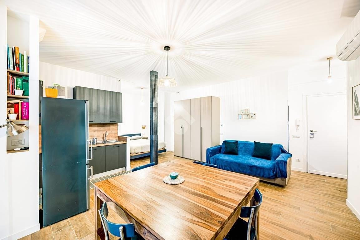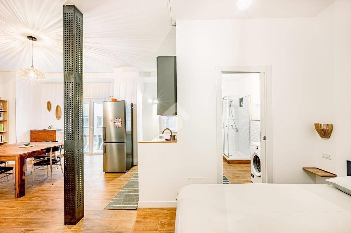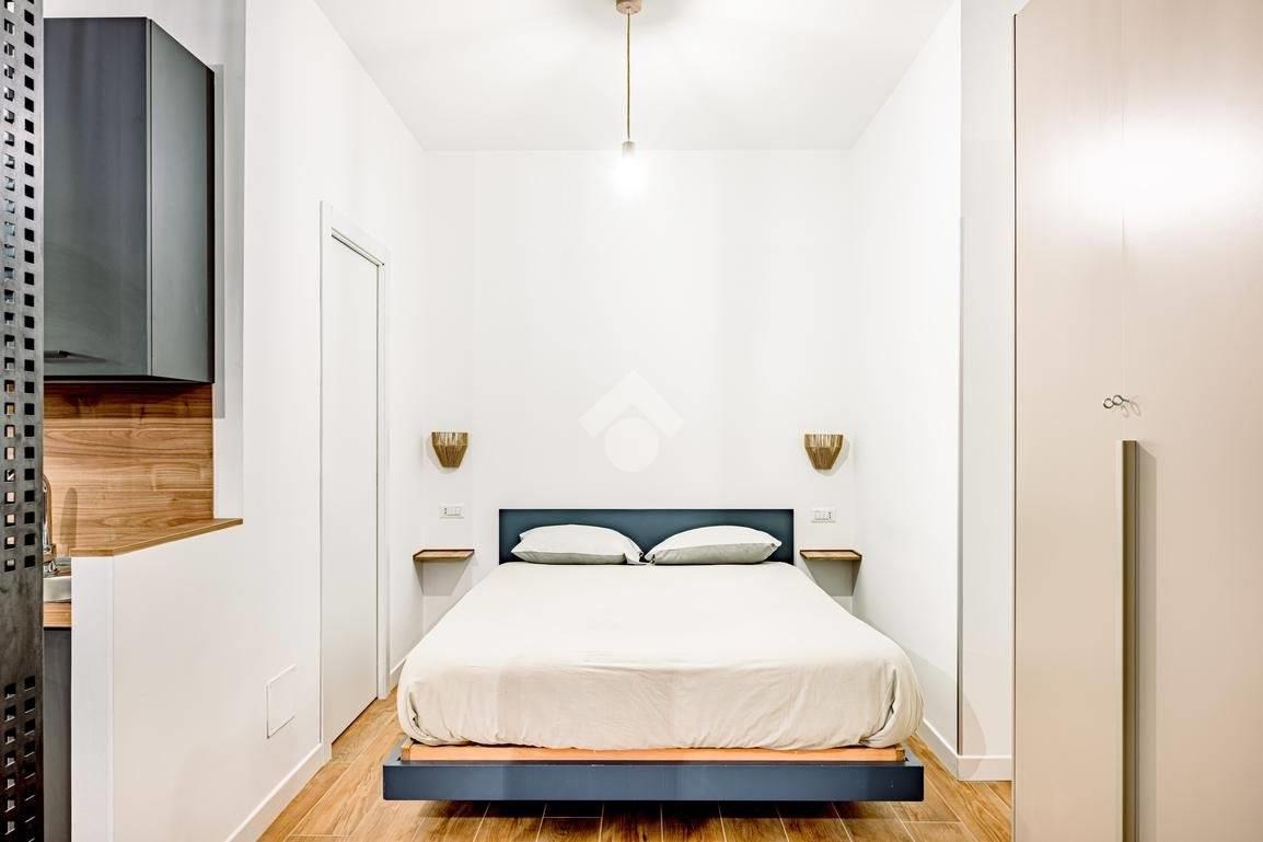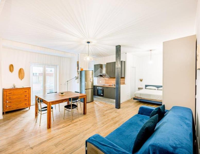 Situato in un edificio in tinta degli anni '50, questo immobile offre uno spazio versatile dove cucina e zona living si fondono in un unico ambiente, separato dalla zona notte e dal bagno, dotato di finestra e doccia.