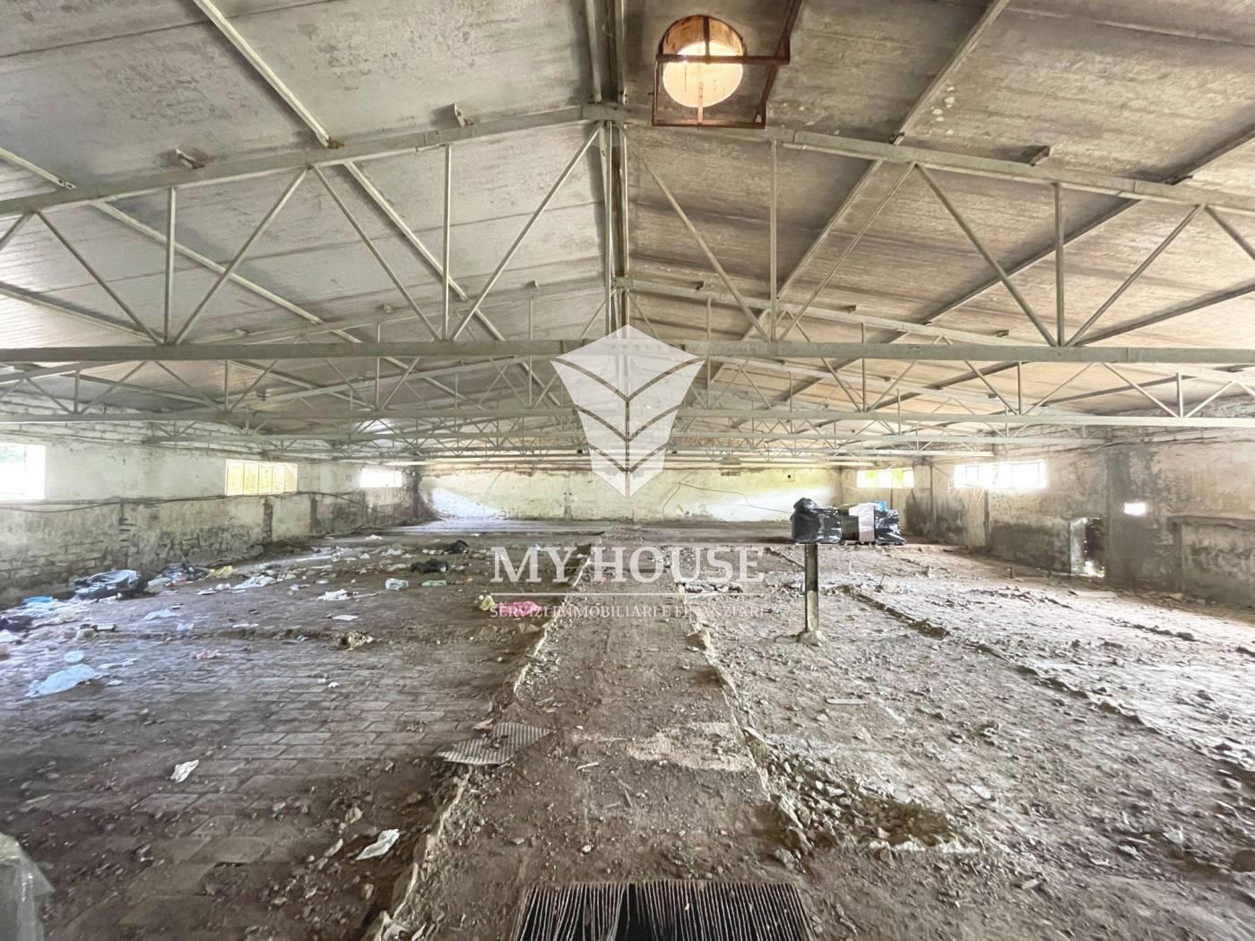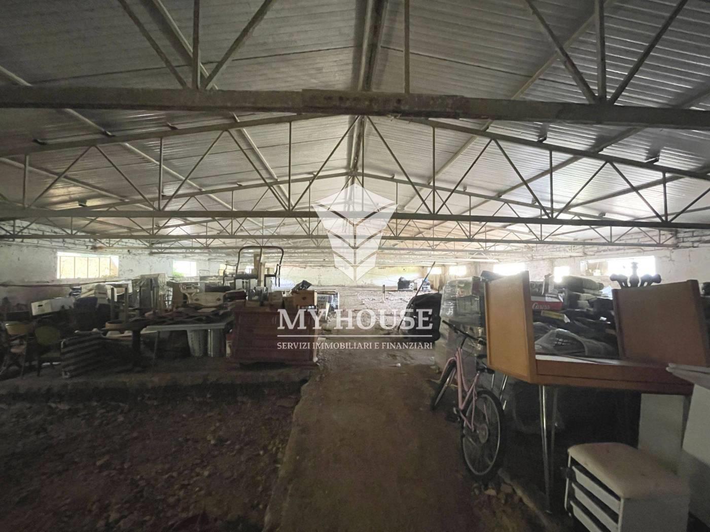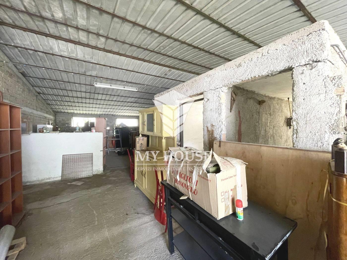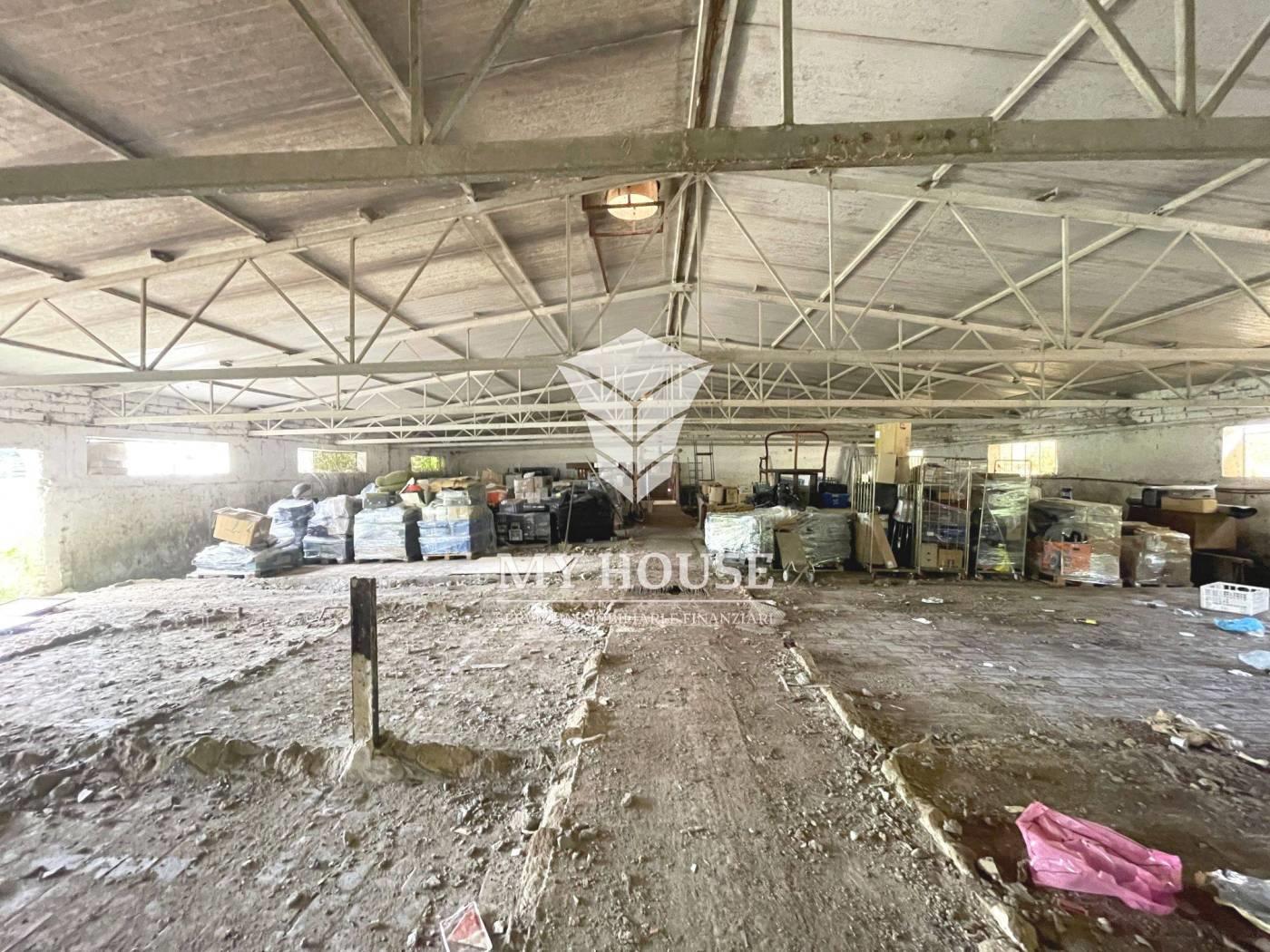 -un capannone di categoria c2 (magazzino-deposito) di mq 800, struttura in muratura con copertura in ferro, suddiviso in due unici ambienti molto luminosi e arieggiati con relativi ingressi.