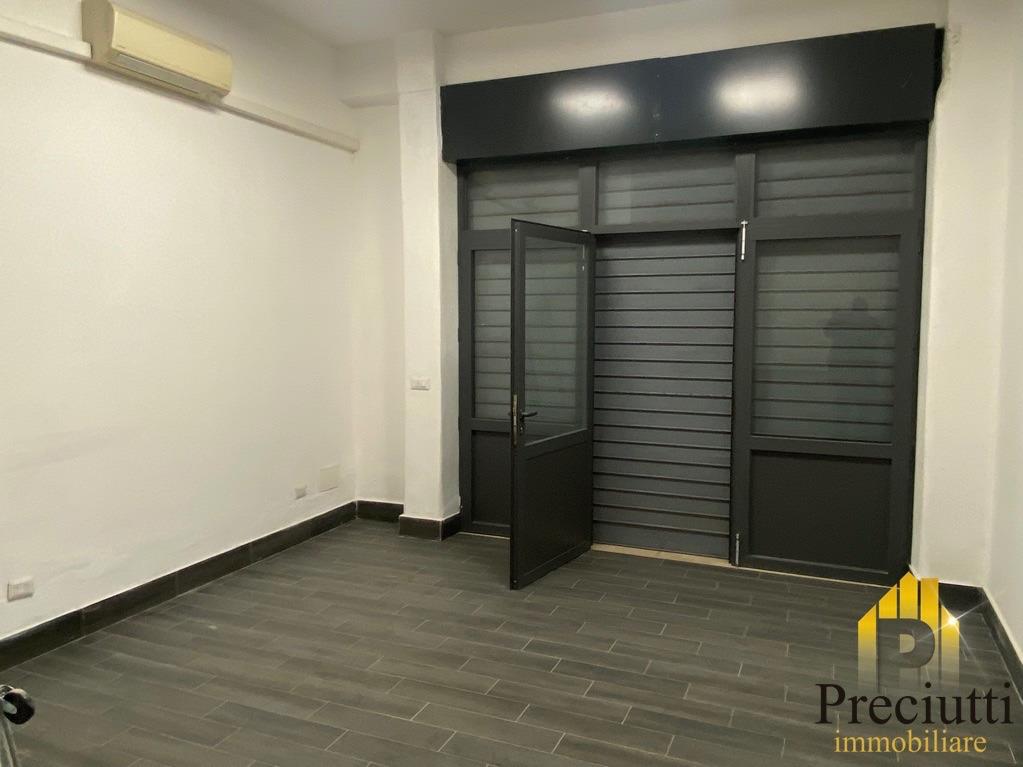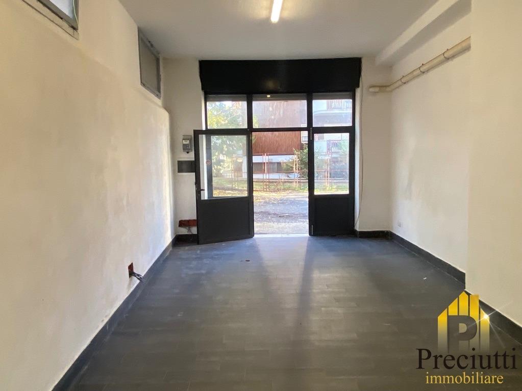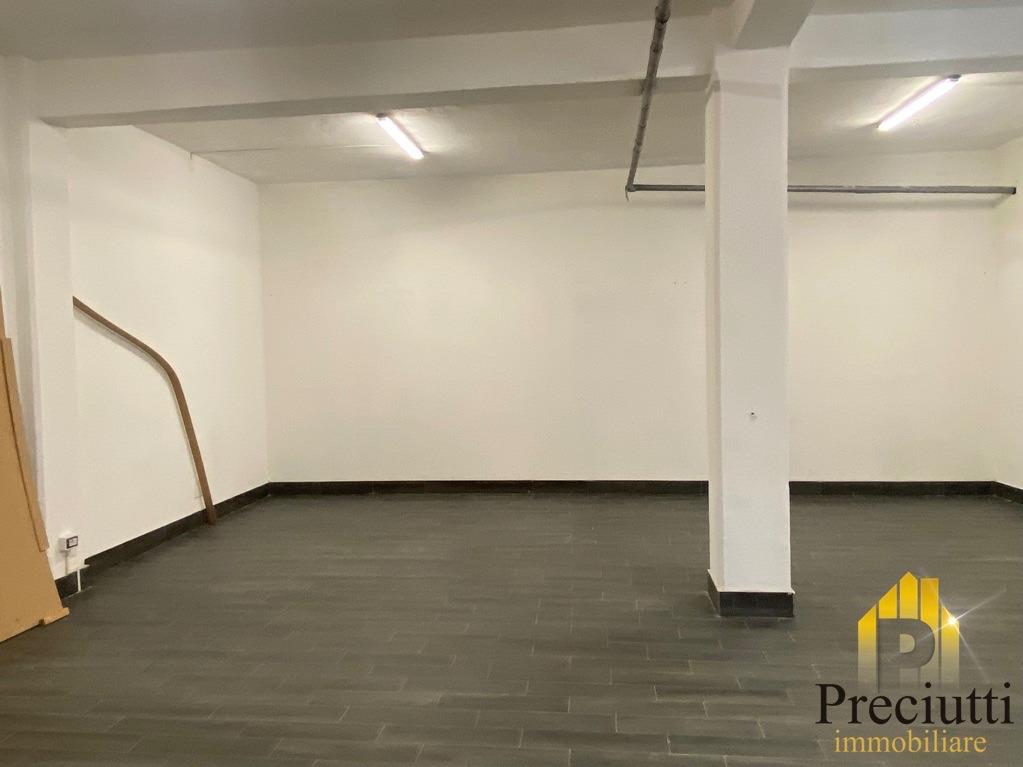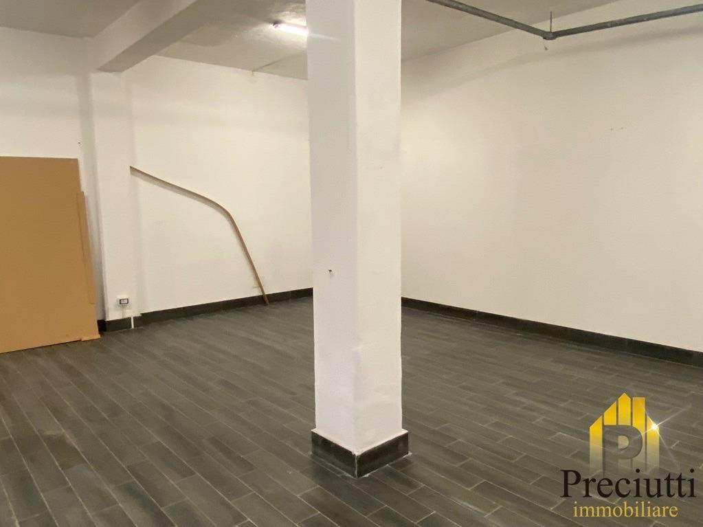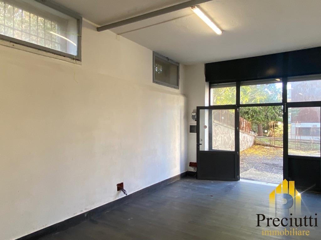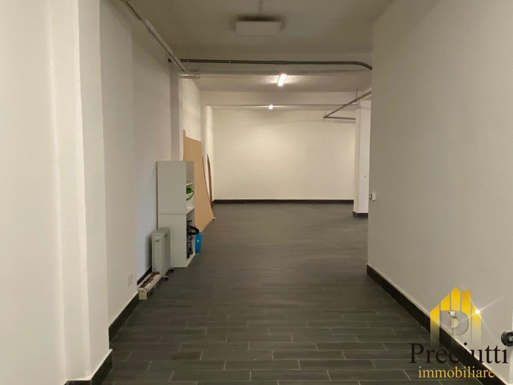Magazzino con due serrande, composto da ampio locale angolare con finestre alte, bagno e ufficio, H soffitti mt. 3,50,