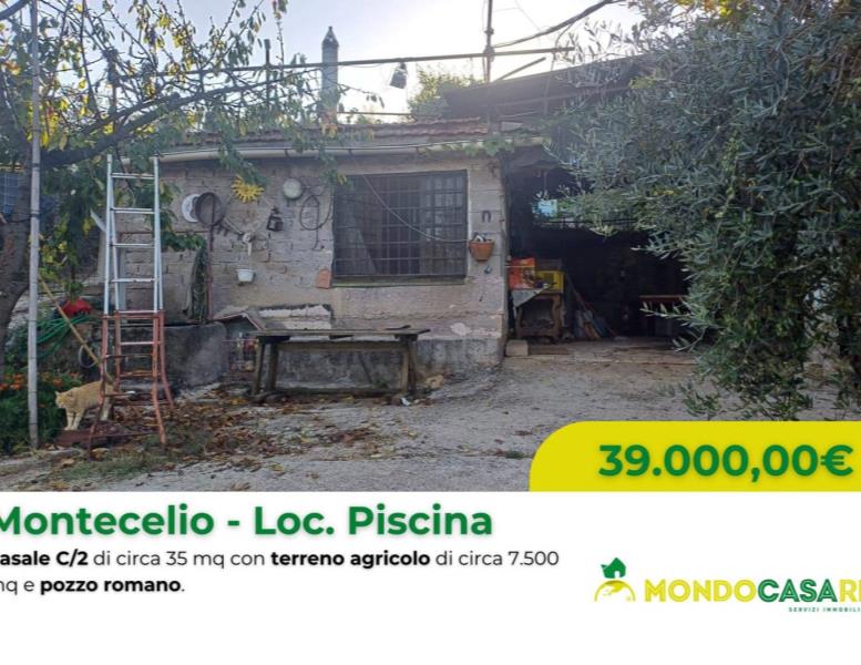 Proponiamo in vendita a Montecelio, in località Piscina, un fabbricato C/2 di circa 35 mq con annesso terreno agricolo di 7.640 mq, arricchito dalla presenza di un caratteristico pozzo romano. All’interno della proprietà è presente anche una tettoia C/7 di circa 30 mq.