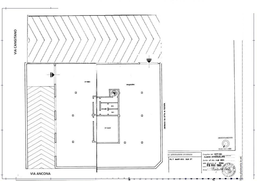 Le rampe carrabili: la più grande con accesso dalla Via Cangitano di 335 Mq comoda anche per il parcheggio delle auto, la più piccola con accesso dalla Via Ancona di 140 Mq.