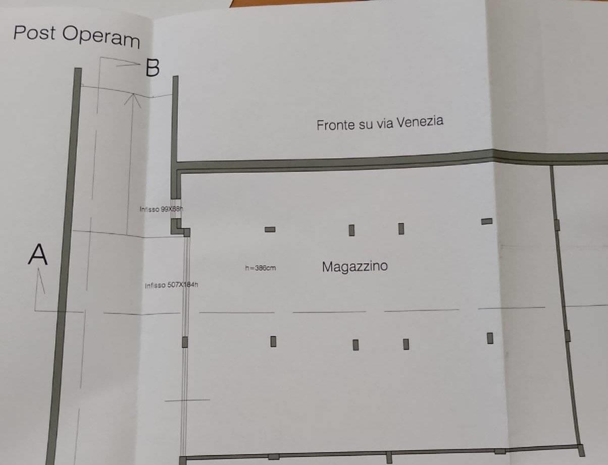 Immobilservice Srl propone in vendita magazzino di 250mq ubicato al piano seminterrato di un condominio sito in Via Venezia 18 D