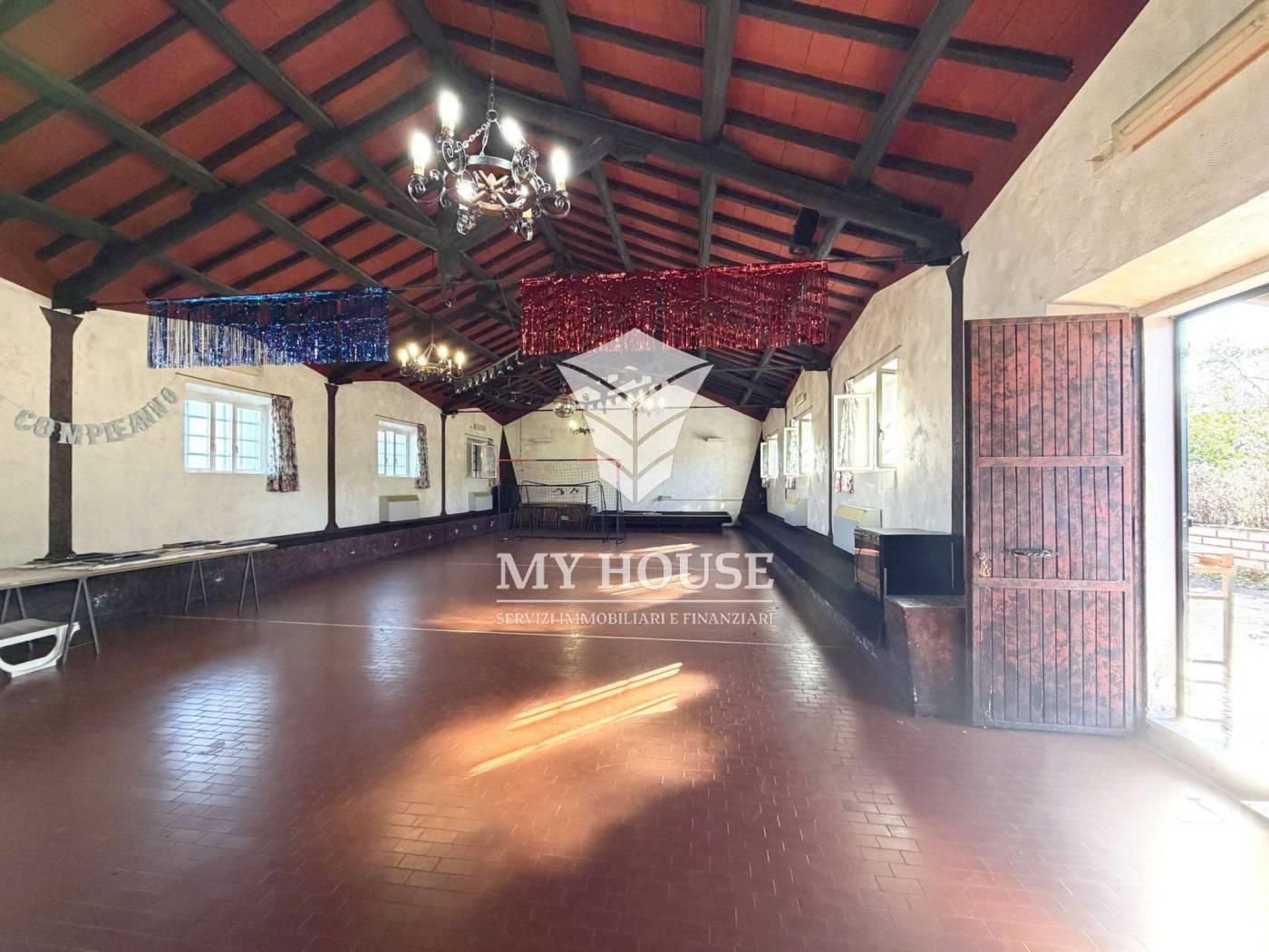 L’interno, un open space di 350 mq c.a con soffitti alti 3,85m con capriate in legno a vista. Lo spazio è completamente rifinito, termoautonomo con termoconvettori elettrici, pavimentato e valorizzato da una finestratura continua lungo il perimetro, rendendolo ideale per accogliere attività che necessitano di ampi volumi e forte esposizione naturale. Caratteristica è la presenza di un grande camino con braciere a vista, mentre in un angolo è presente un piano bar. Completa l’open space una zona servizi, composta da una grande cucina, una stanza con balcone utilizzabile come supporto operativo o ufficio, oltre a un doppio antibagno uomo/donna con servizio.