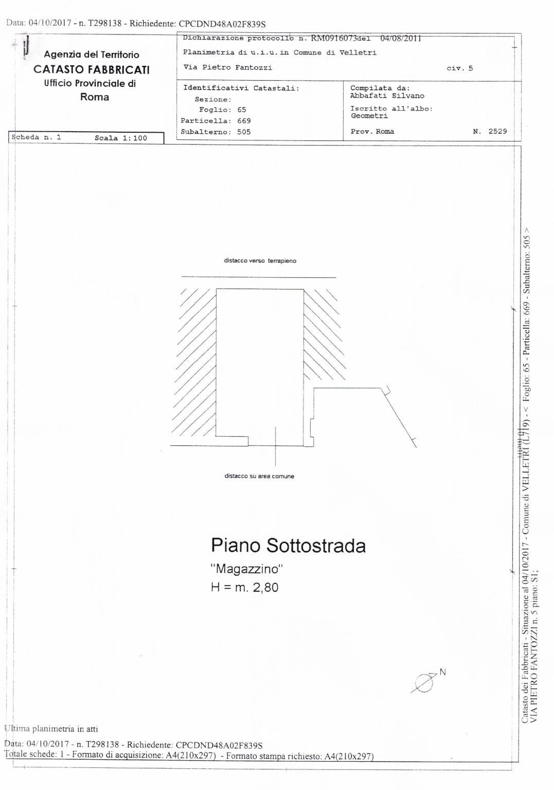 Velletri, in via pietro fantozzi, in posizione centrale distante soli 200mt dal'ospedale, proponiamo un locale magazzino c2 di 20mq al piano seminterrato.Capienza di auto moto ed eventuali scaffallature.Categoria C/2.€24.000,00