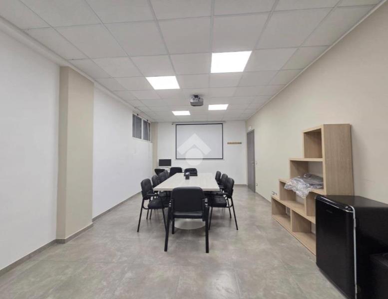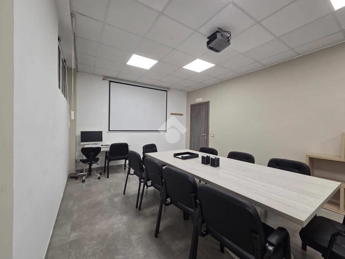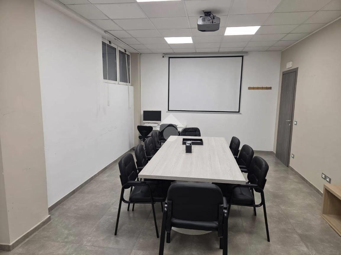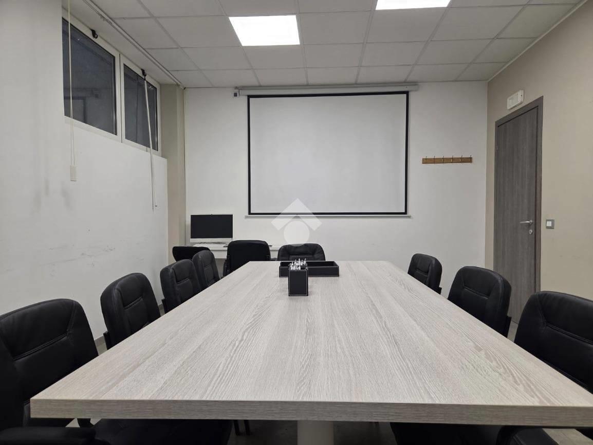 ampia sala riunioni con videoproiettore, collegata tramite corridoio ad altri due ambienti