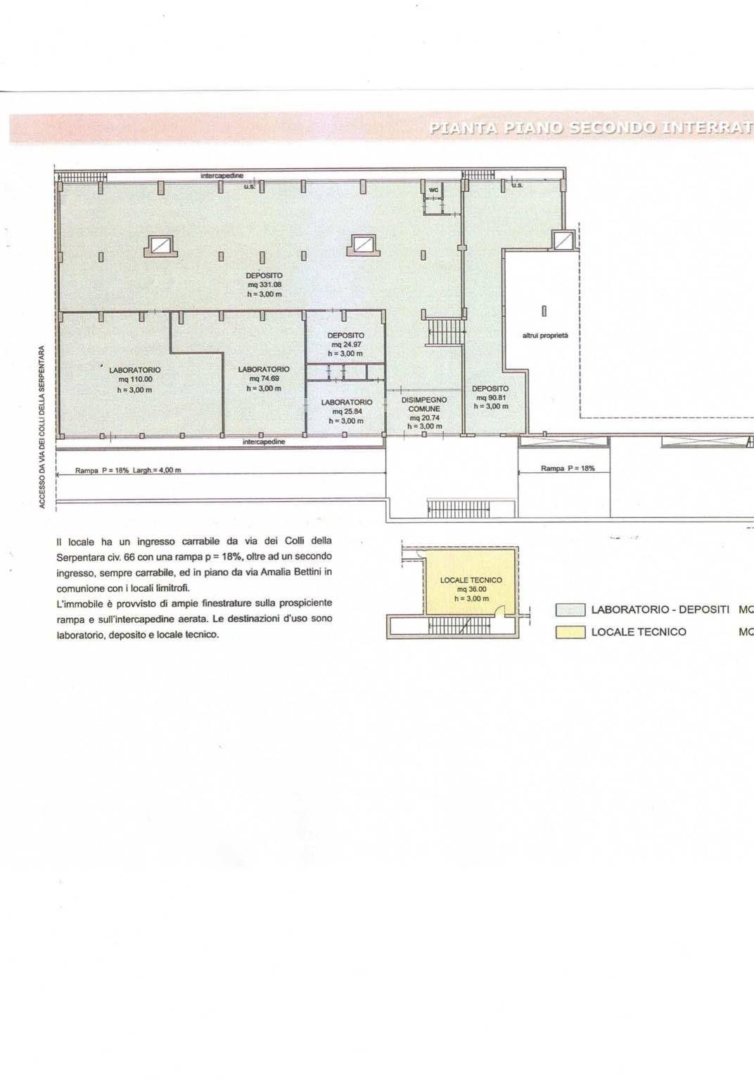 La proprietà è divisa con due destinazioni d'uso: parte deposito e parte laboratorio oltre ad un locale tecnico di 36 mq.