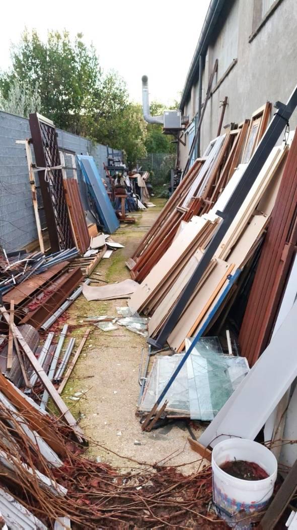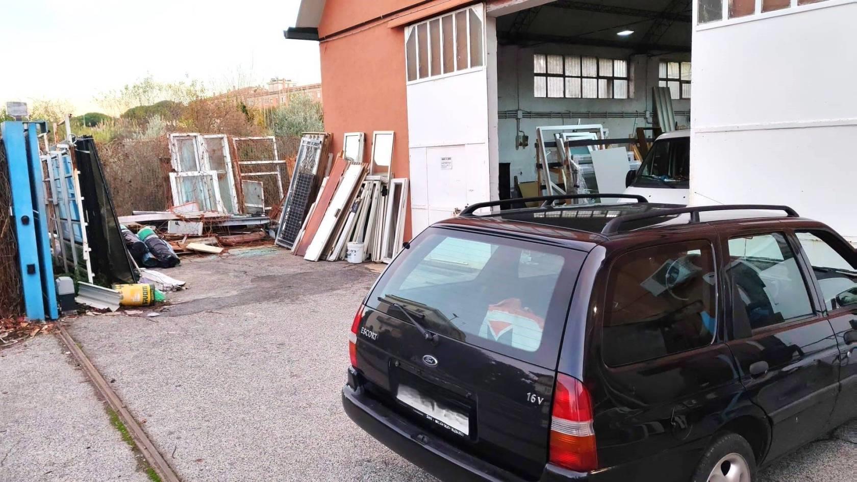 Il capannone è chiuso da un ampio cancello scorrevole di 8 mt di larghezza e da un ingresso pedonale.