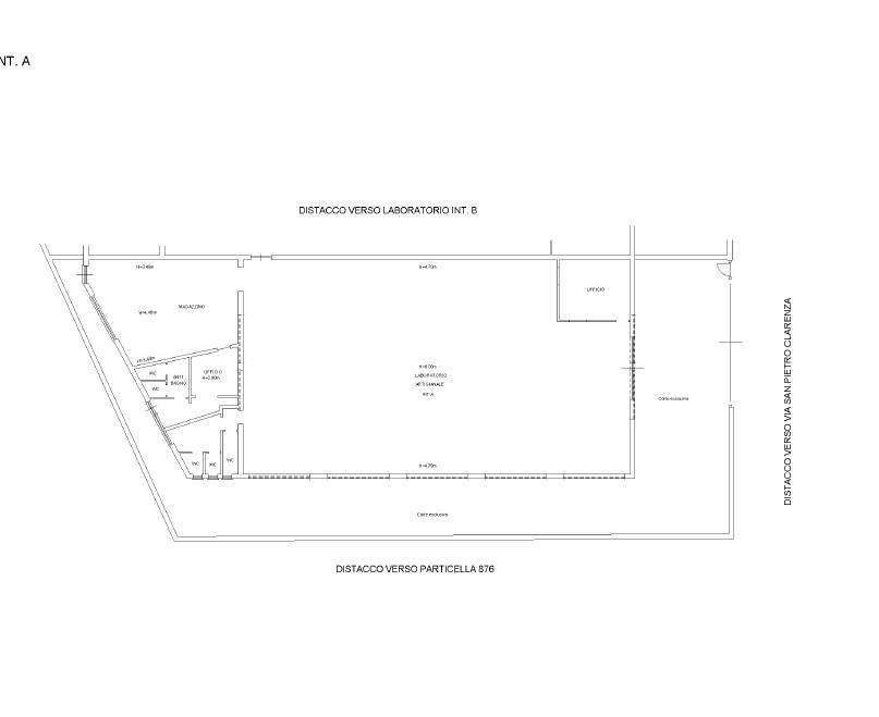 L'immobile si presenta in buone condizioni ed è composto da un ampio locale privo di colonne o tramezzature per le lavorazioni, al cui interno troviamo un ampio angolo dedicato agli uffici amministrativi (mq 25, circa), una zona magazzino posta sul lato posteriore del capannone, una zona servizi (spogliatoio, bagni) con uscita sia laterale che posteriore, un ampio soppalco sovrastante gli uffici.