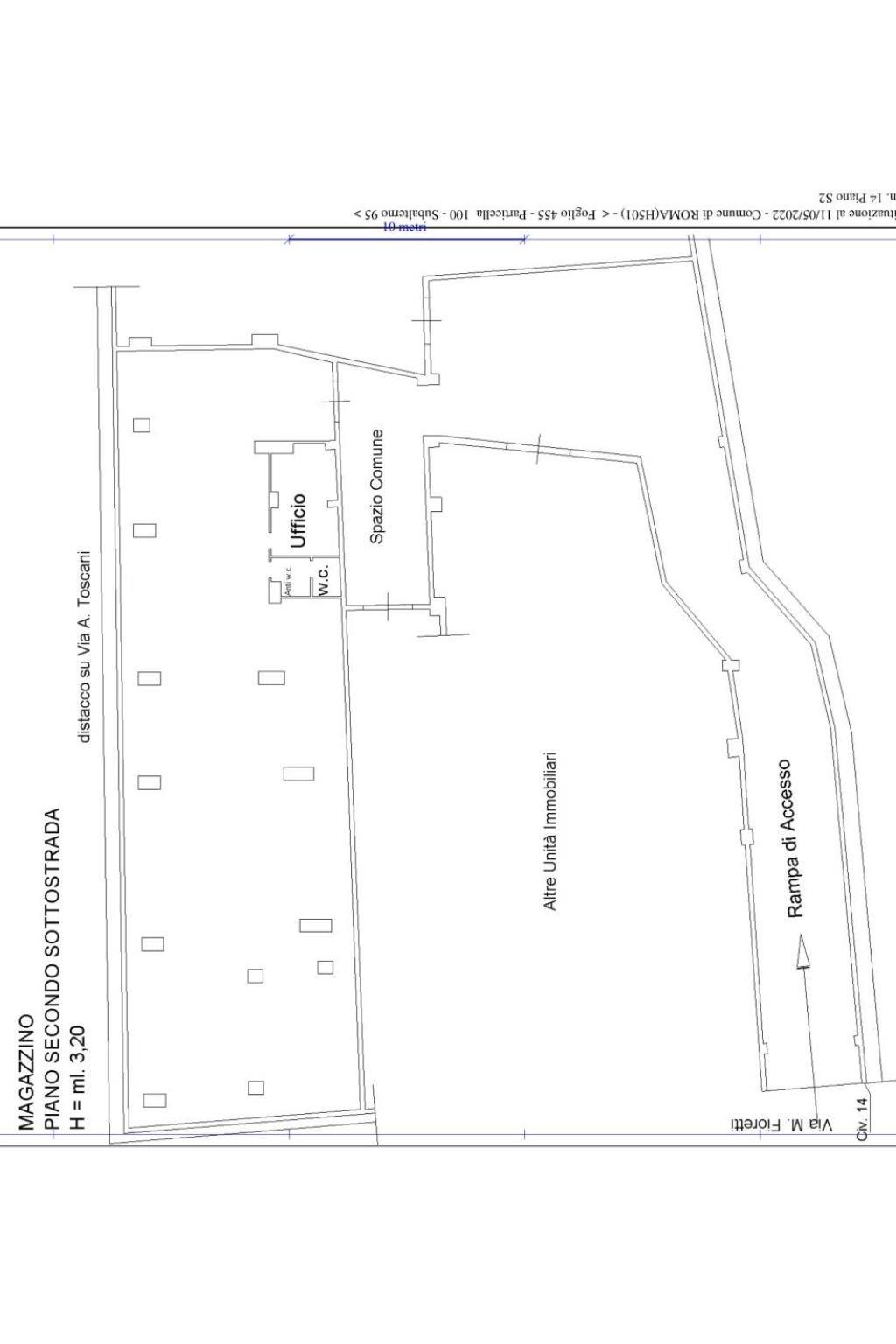 Il bene gode di un'ampia superficie di circa 320mq, situato al piano S2 con rampa di accesso da via Mario Fioretti.