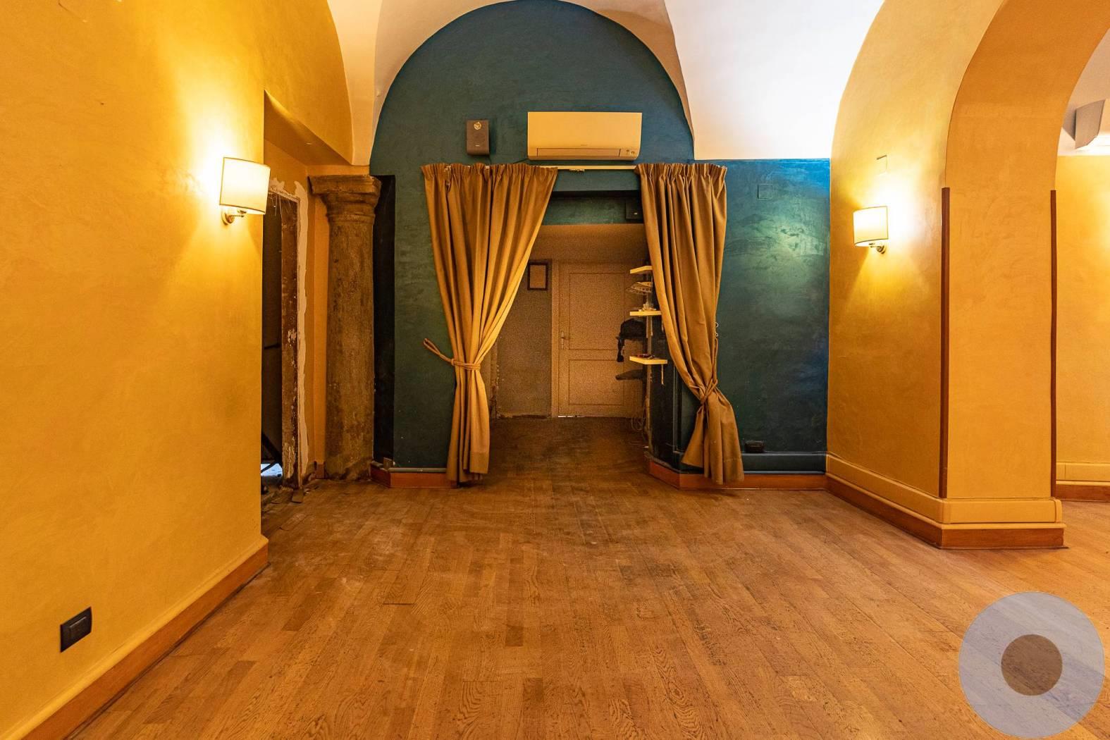 Il locale si sviluppa su due livelli, è dotato di doppio ingresso, uno sulla via e un altro dal portone. Al piano di entrata troviamo la sala con circa 45 posti a sedere, la cucina e la zona lava piatti, al piano inferiore troviamo la taverna per degustazione, spogliatoi, sala dispensa e servizi.