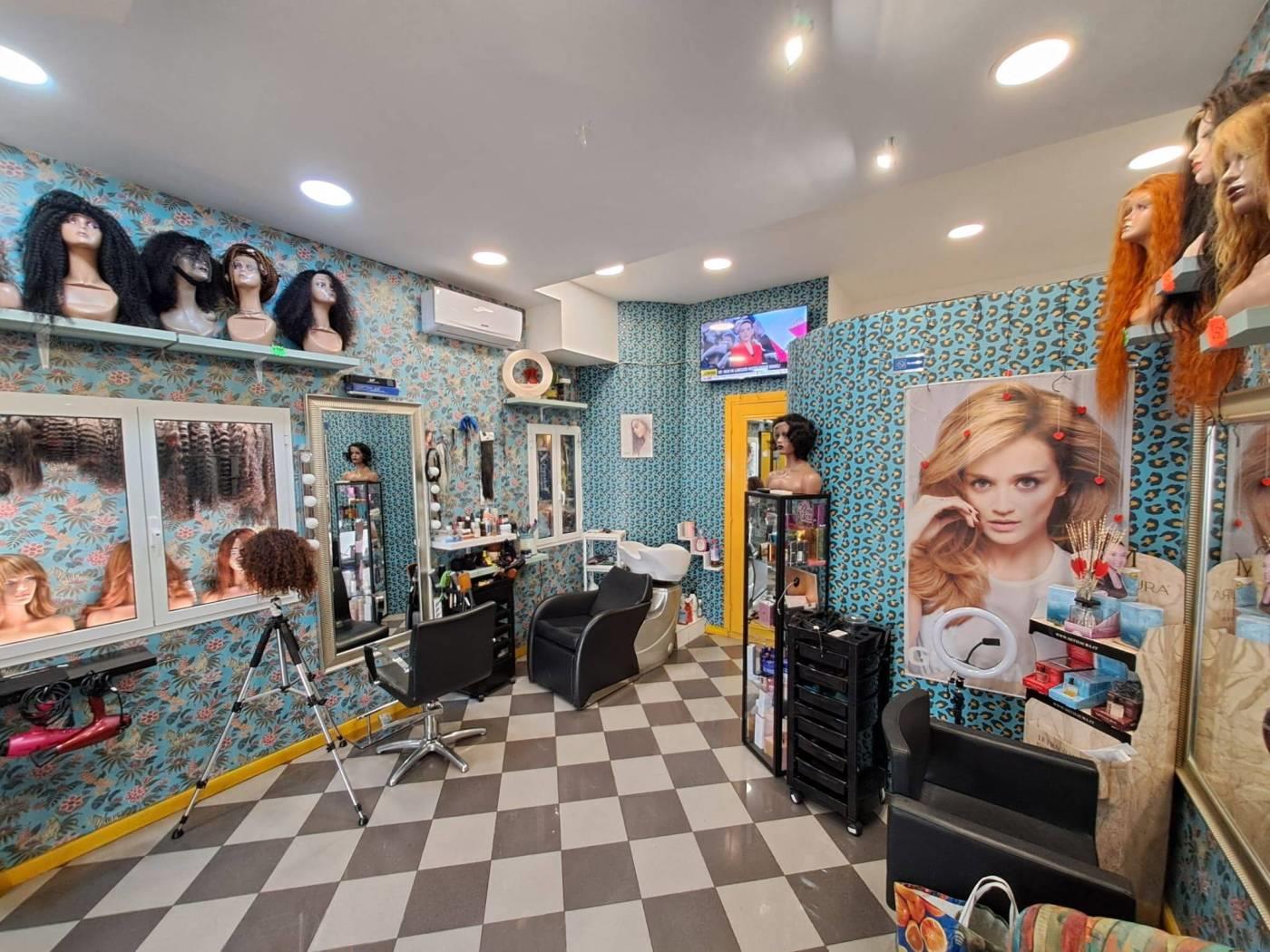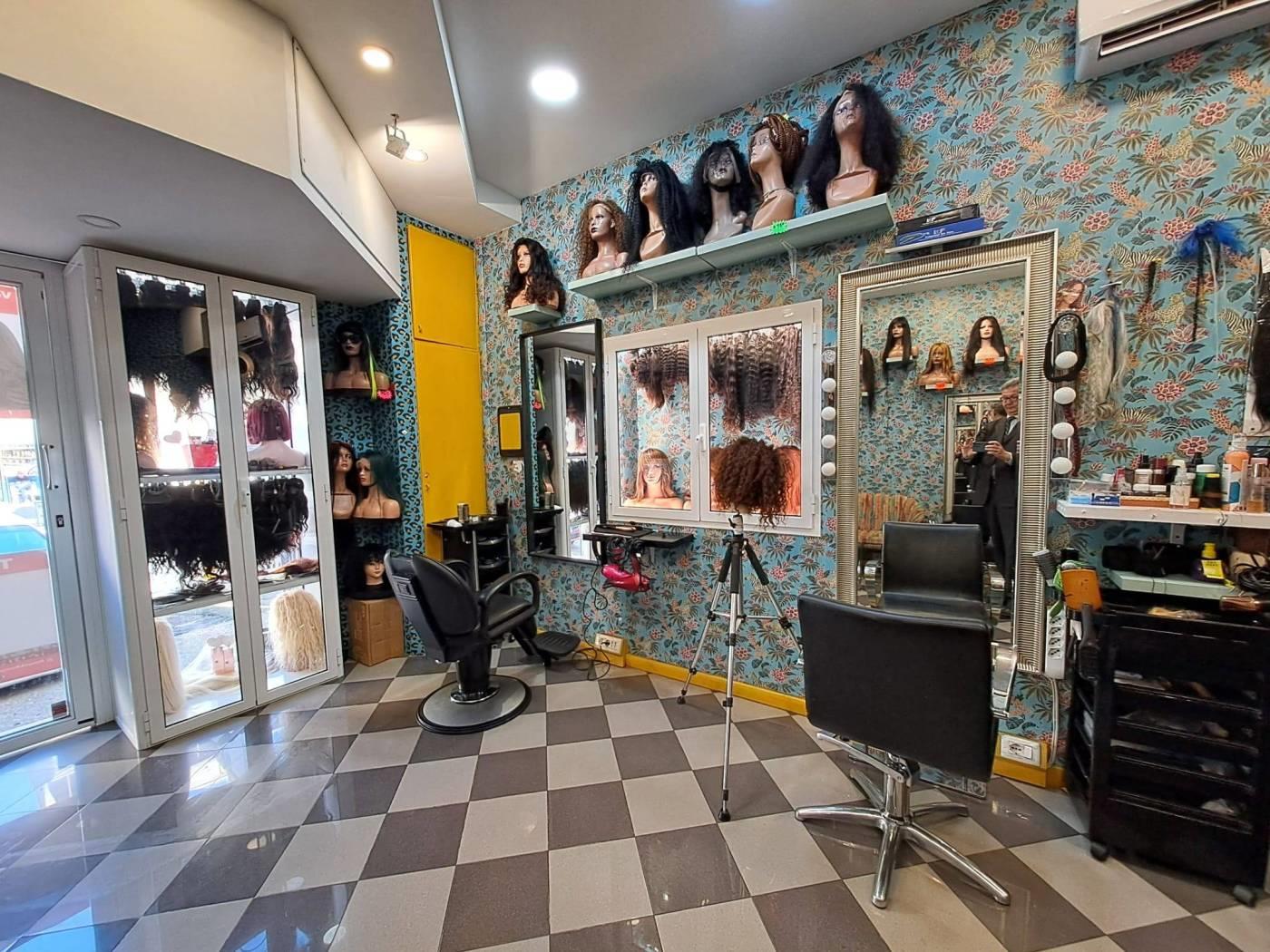 Negozio con una vetrina su strada e servizio igienico.