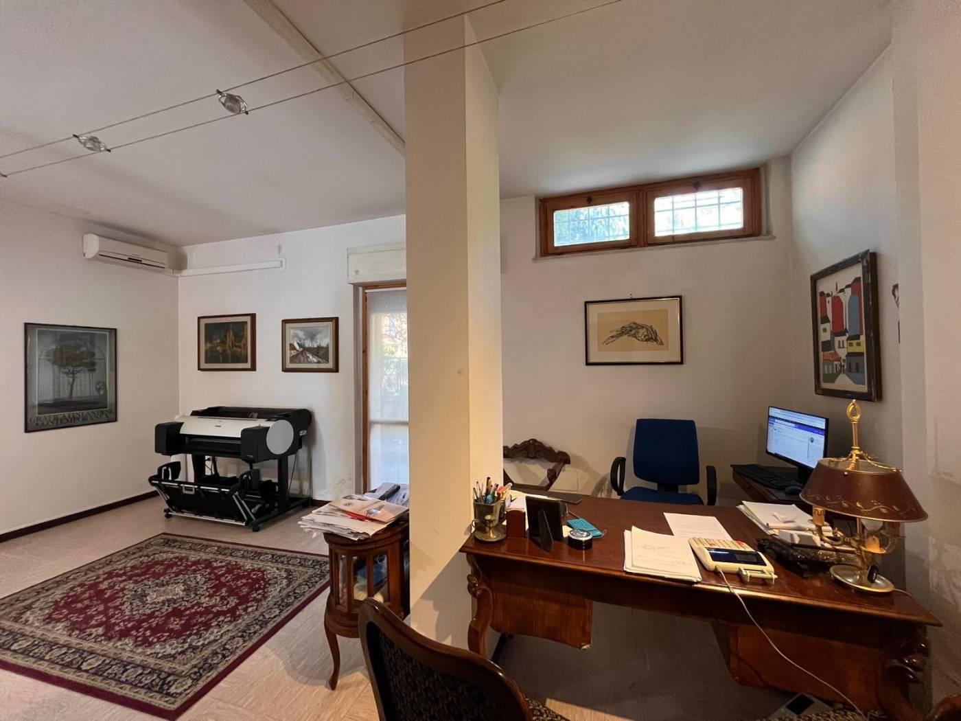 L'immobile si sviluppa su due livelli: al piano terra troviamo due ampie sale attigue con divisori e tramezzi per creare tre ambienti distinti per lavorare e doppi servizi ((due bagni ristrutturati con ampio antibagno). Completa il piano terra un piccolo giardino esterno e silenzioso perfetto per piccole colazioni o pause relax.