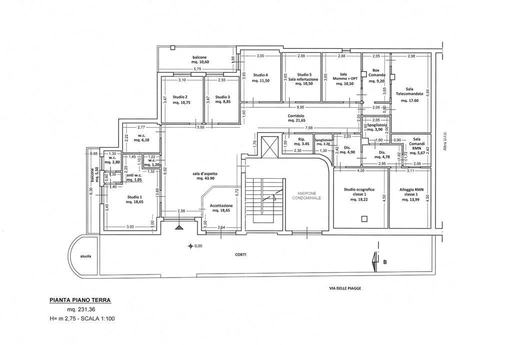 Via delle Piagge, locale commerciale (C1) di 232 mq composto da dieci stanze, due bagni, due balconi. Possibilità di parcheggio. Ottimo per studi medici e/o professionali.