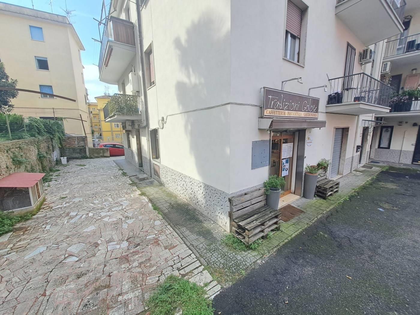 Il locale commerciale di mq 52 è composto da due ampi spazi separati con l'area di somministrazione e il bancone bar con tutte le attrezzature necessarie, cucina, magazzino, servizio e corte antistante.