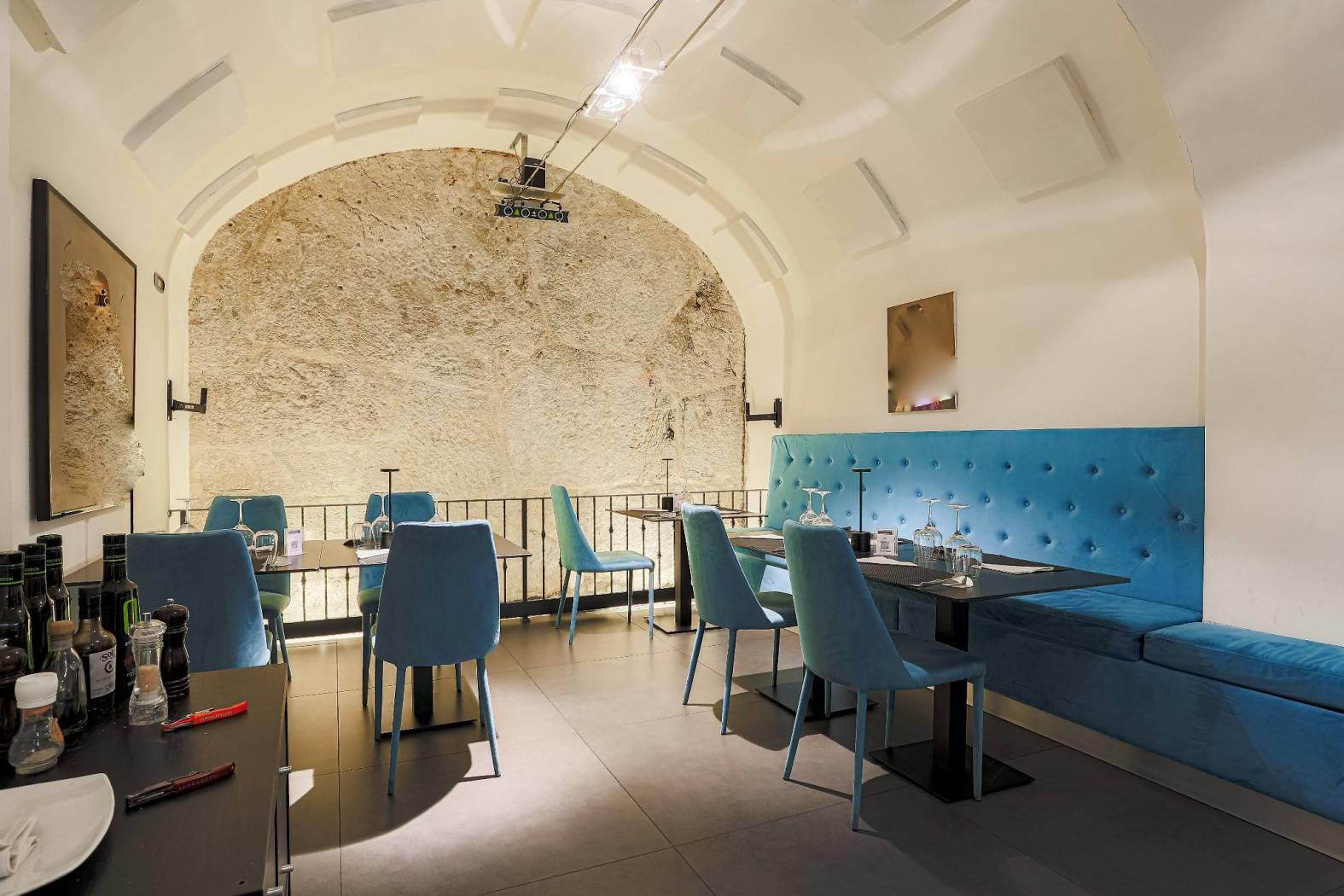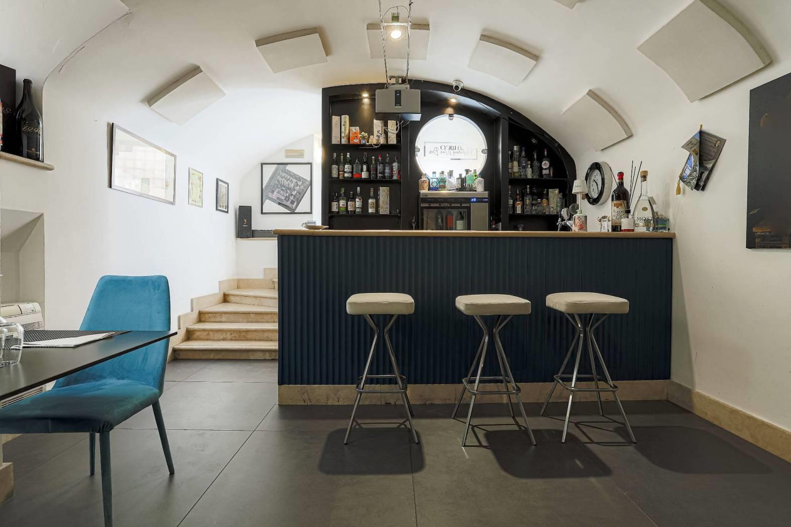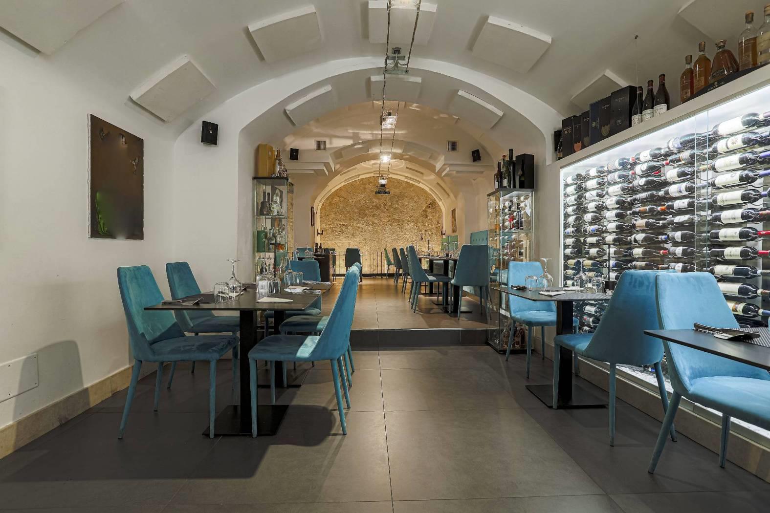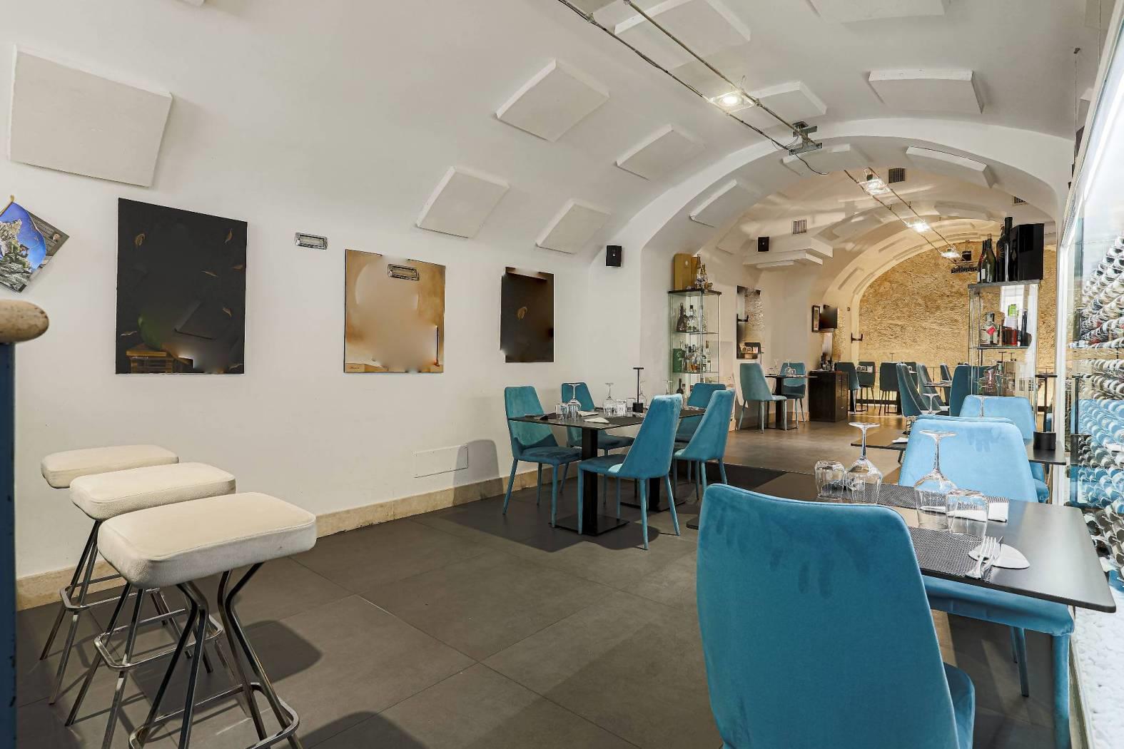 Il locale di 170mq è disposto: ingresso, tre sale dove accogliere i propri commensali, cucina con anticucina, bagni uomo e donna, bagno/spogliatoio per il personale, magazzino, ripostiglio ed una splendita grotta al piano seminterrato adibita a cantina dei vini.