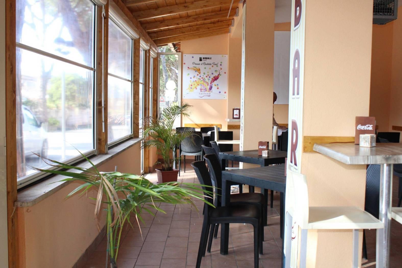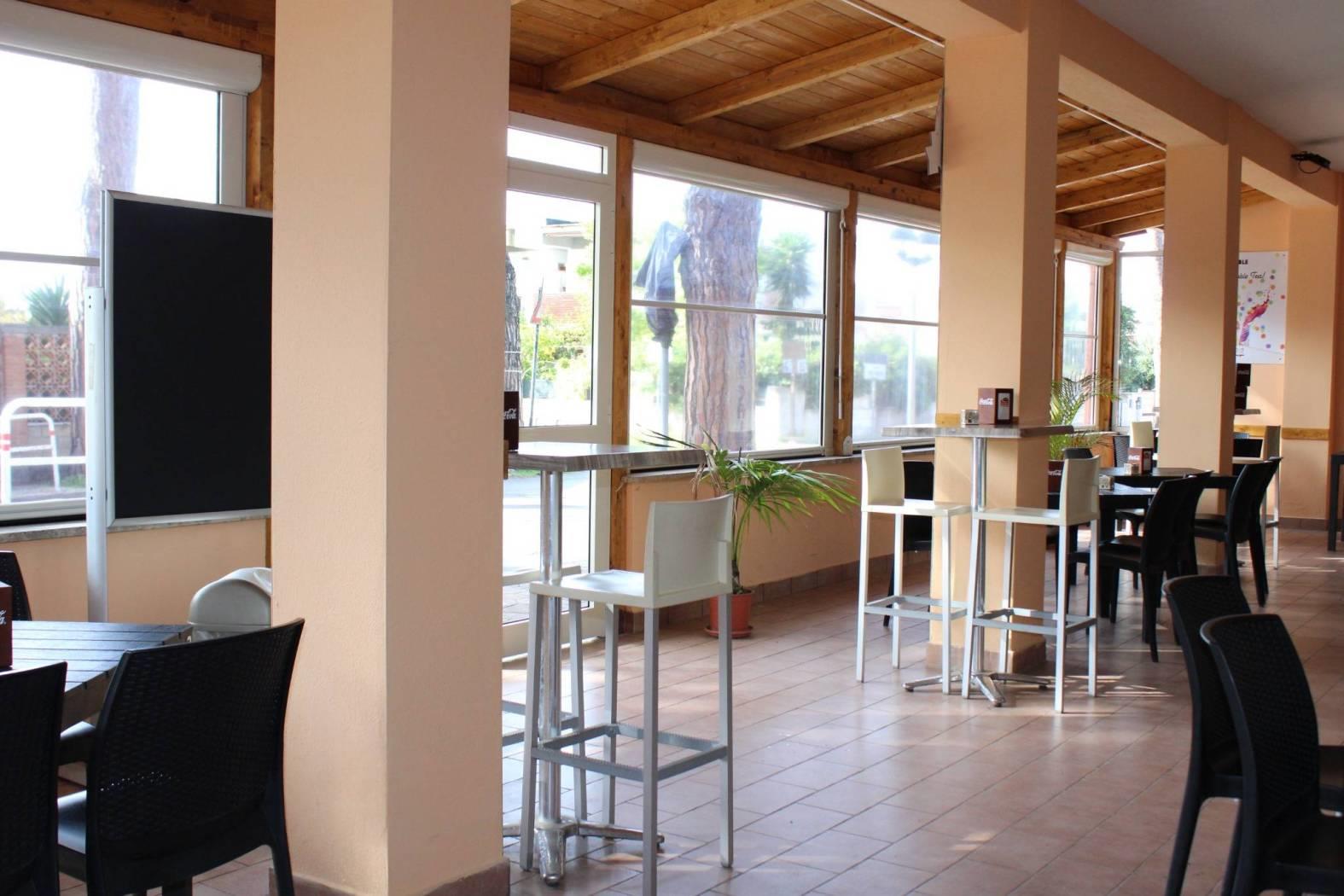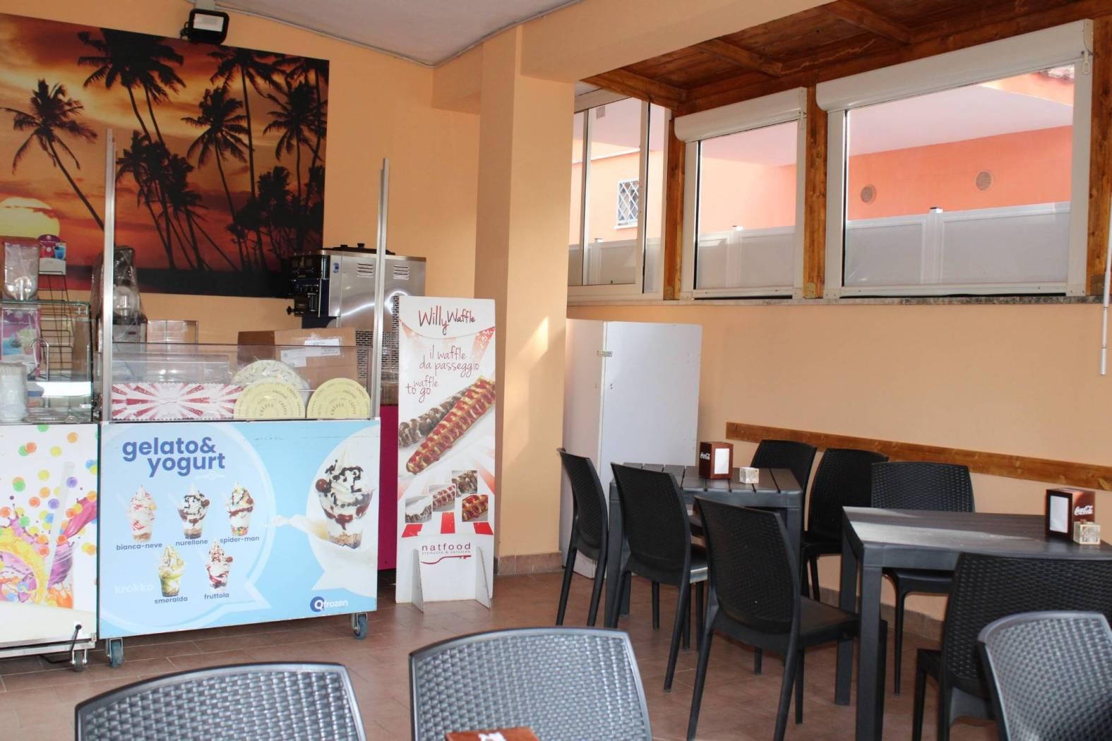 Il locale, ristrutturato con gusto, è organizzato con: bancone per il consumo veloce, vetrina dei prodotti dolciari con sezione refrigerata adibita alla vendita di tramezzini, panini e pizze farcite; retrobanco organizzato con vari armadietti a terra e frigoriferi per il deposito dei materiali per utilizzo immediato, bottigliera, macchina del caffè marchio FAEMA in comodato d'uso, macinino per il caffè decaffeinato, cioccolatiera, spremiagrumi, piastre riscaldanti ed altro; capiente bancone dei gelati; zona cassa e ricevitoria Sisal e Lottomatica; corner adibito alla vendita dei Gratta e Vinci e degli articoli per fumatori; magazzino, antibagno e 2 wc nella zona bar; frigoriferi/vetrina in comodato d'uso esposti per il refrigerio di acqua e bevande; spaziosa e luminosa cucina professionale per attività di ristorazione, dotata di wc privato e super accessoriata da: canna fumaria, aspirazione fumi, grande banco per la preparazione dei cibi, friggitrici, affettatrice, congelatori, forni, frigoriferi, lavabi, bilancia e vari utensili professionali.