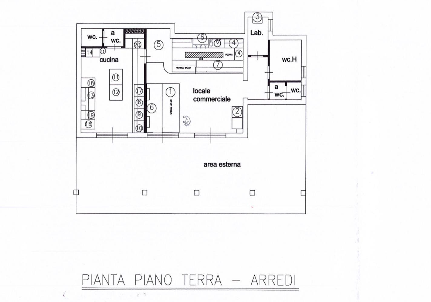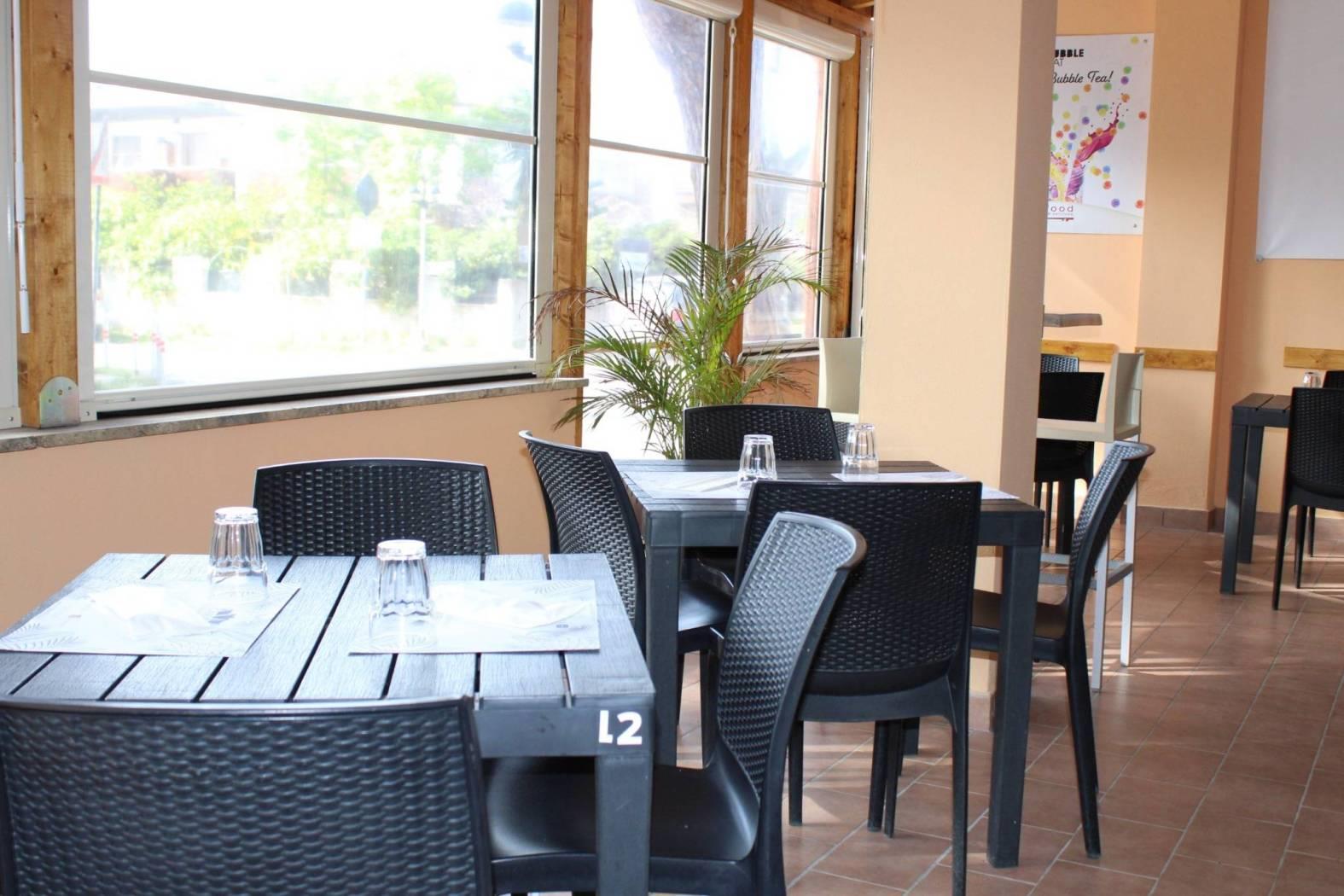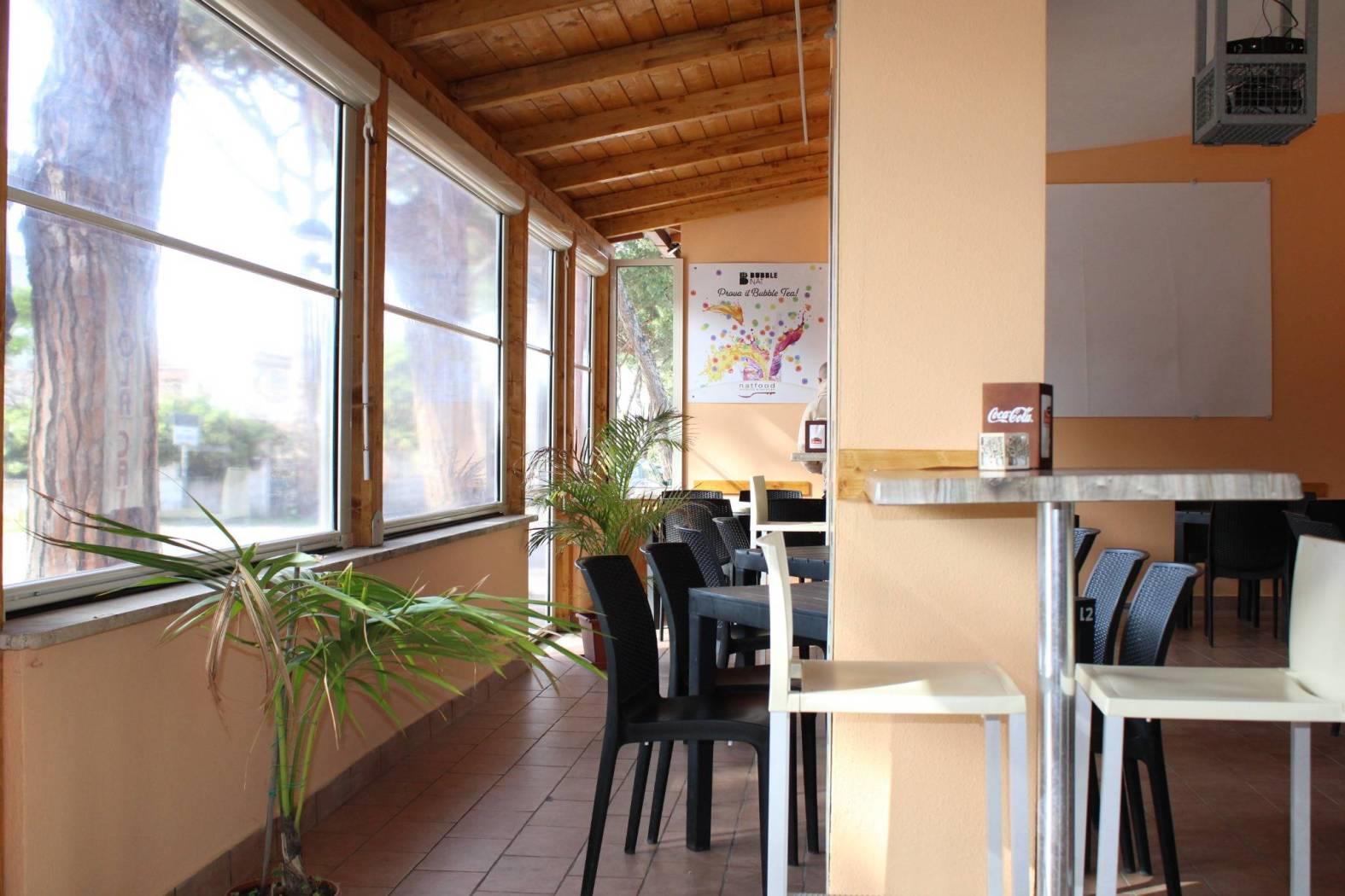 Il locale, ristrutturato con gusto, è organizzato con: bancone per il consumo veloce, vetrina dei prodotti dolciari con sezione refrigerata adibita alla vendita di tramezzini, panini e pizze farcite; retrobanco organizzato con vari armadietti a terra e frigoriferi per il deposito dei materiali per utilizzo immediato, bottigliera, macchina del caffè marchio FAEMA in comodato d'uso, macinino per il caffè decaffeinato, cioccolatiera, spremiagrumi, piastre riscaldanti ed altro; capiente bancone dei gelati; zona cassa e ricevitoria Sisal e Lottomatica; corner adibito alla vendita dei Gratta e Vinci e degli articoli per fumatori; magazzino, antibagno e 2 wc nella zona bar; frigoriferi/vetrina in comodato d'uso esposti per il refrigerio di acqua e bevande; spaziosa e luminosa cucina professionale per attività di ristorazione, dotata di wc privato e super accessoriata da: canna fumaria, aspirazione fumi, grande banco per la preparazione dei cibi, friggitrici, affettatrice, congelatori, forni, frigoriferi, lavabi, bilancia e vari utensili professionali.
