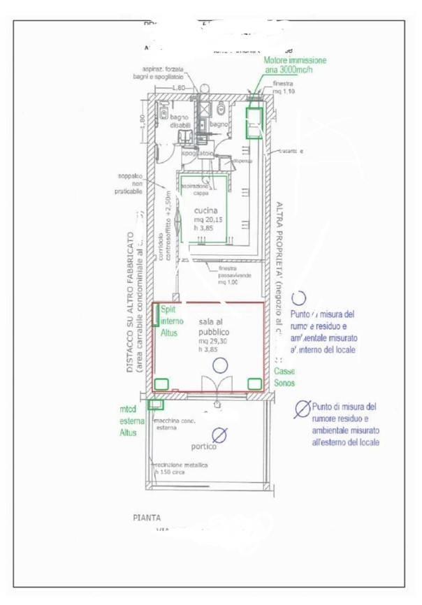 Locale commerciale è di circa 60 mq. interni ed oltre 25 mq. area esterna di proprietà (per la sala riservata al pubblico, 30 mq. + 30 mq. riservati alla cucina completa di stigliatura e canna fumaria come nuova ed a norma) un bagno per portatori di handicap.