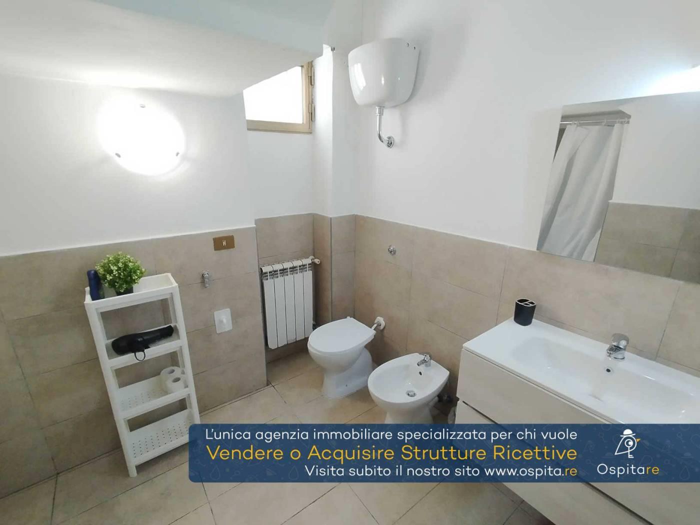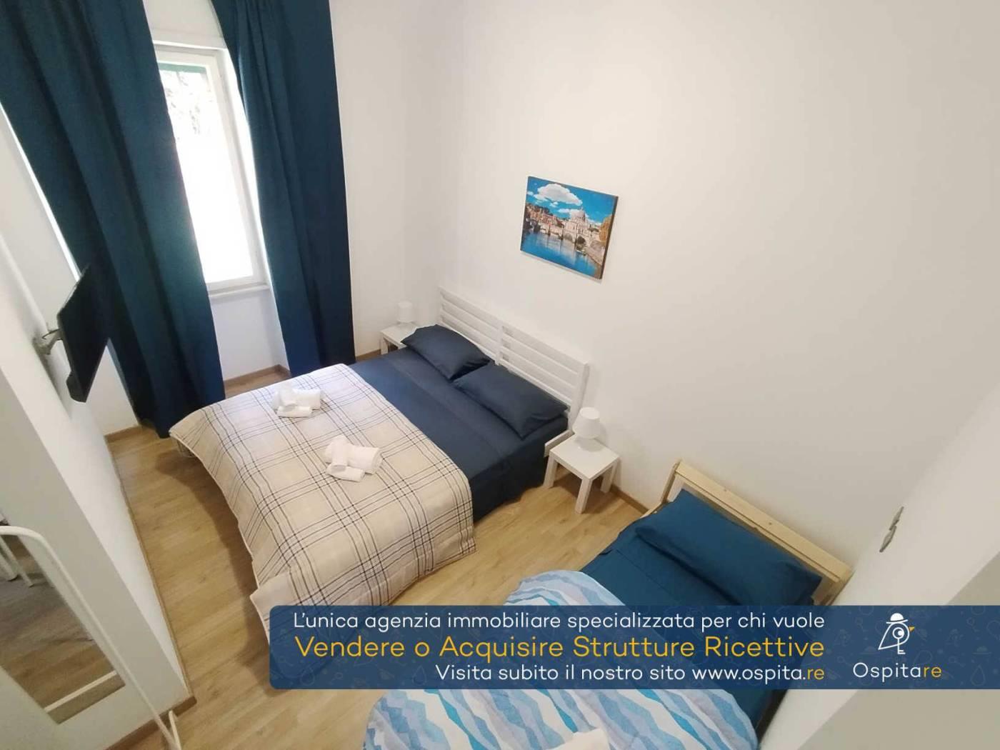 L’appartamento, di circa 100 mq interni e situato all’interno di un grazioso villino indipendente, risulta disposto su due livelli e così composto: al piano terra, ingresso, area comune di circa 30 mq, cucina separata attualmente utilizzata come magazzino ed una prima camera tripla con bagno interno; al primo piano sono presenti ulteriori tre camere da letto tutte dotate di bagno en suite, di cui due matrimoniali ed una tripla, per un totale di n.9 posti letto autorizzati.