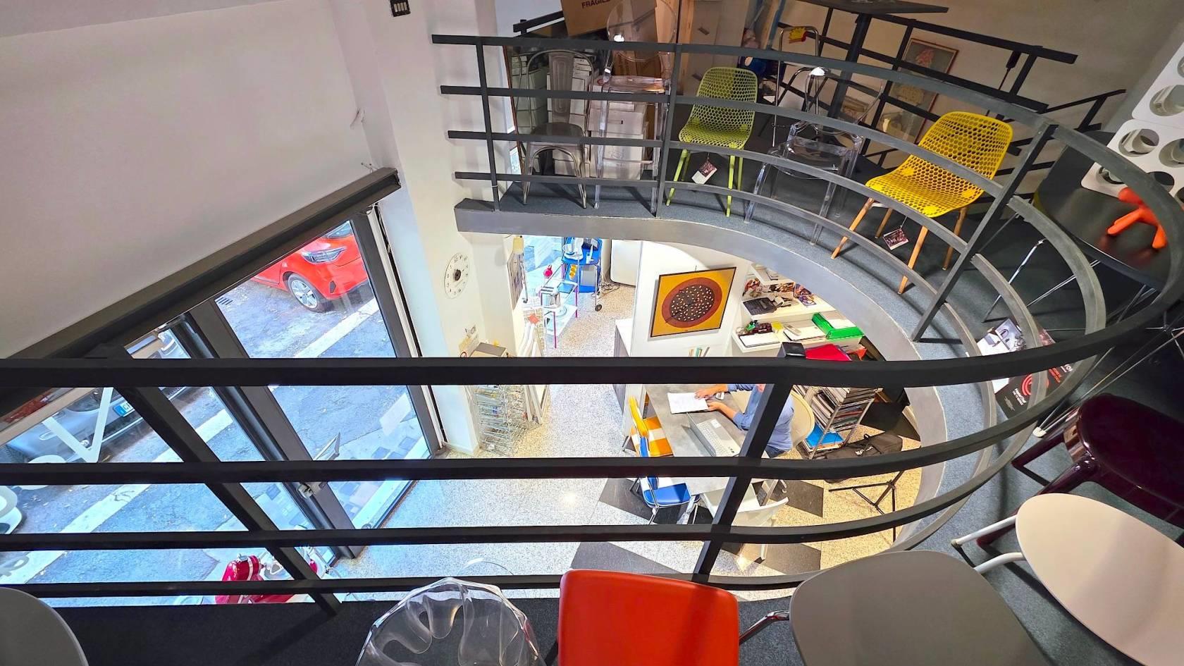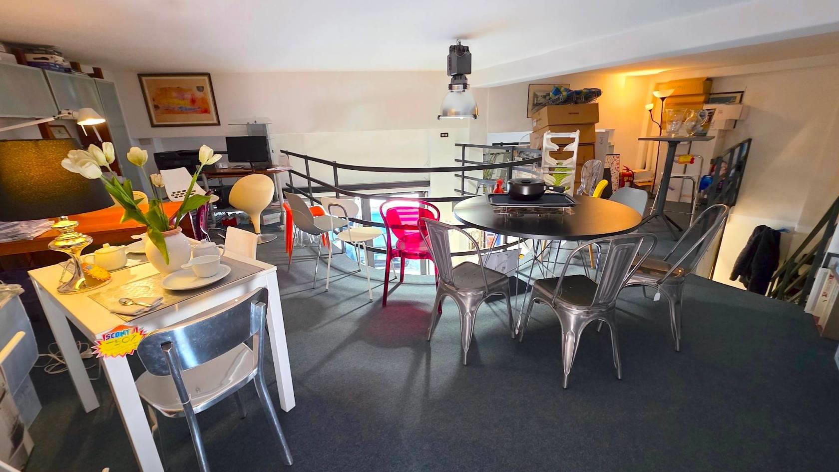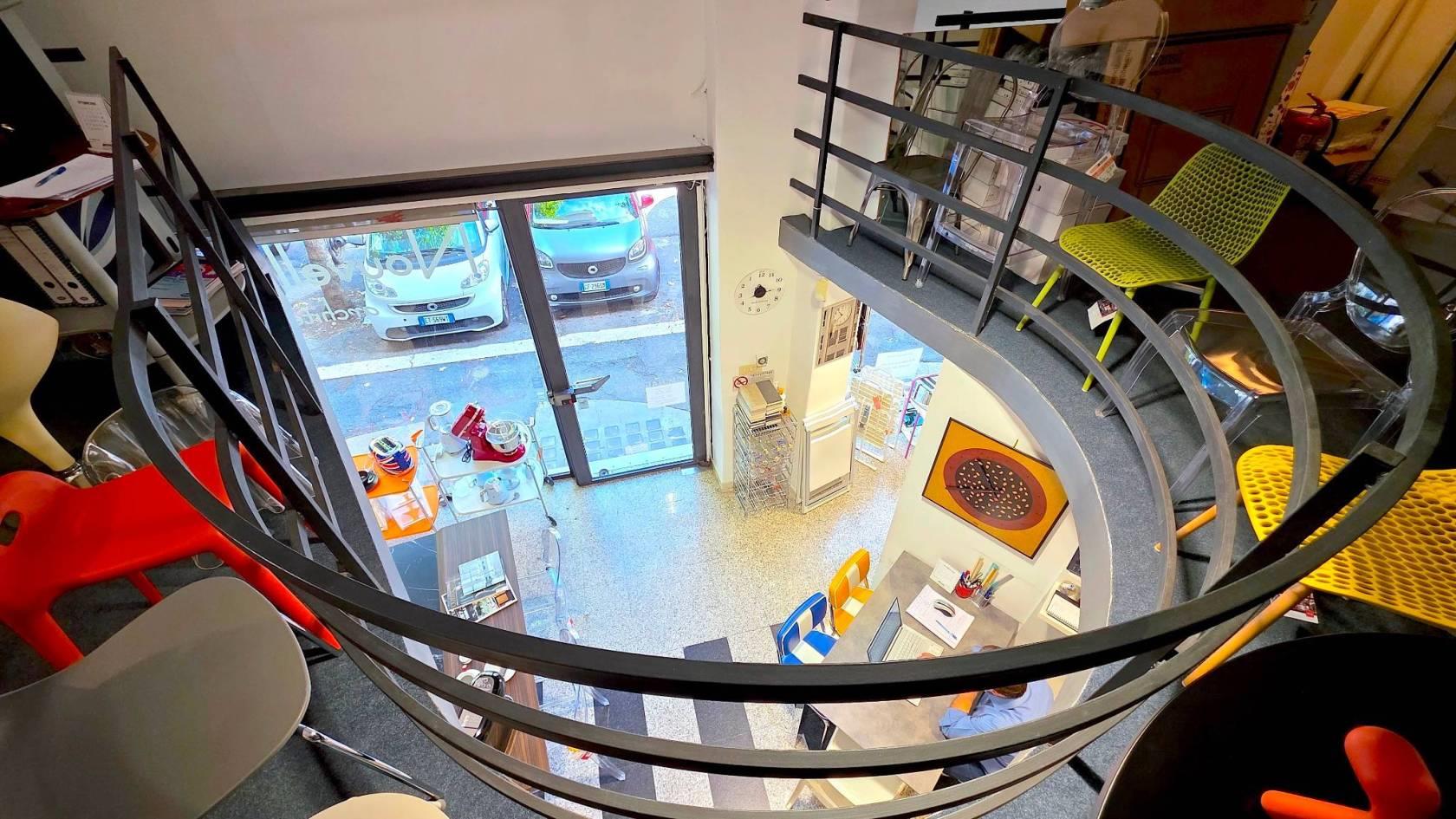 distribuito per circa 50 mq al piano strada con due ampie vetrine, 60 mq al piano seminterrato, ambiente luminoso e arieggiato con grande finestra e scala interna di collegamento tra i due piani e 40mq al piano soppalcato, praticabile ed utilizzabile per esposizioni o uffici di progettazione.