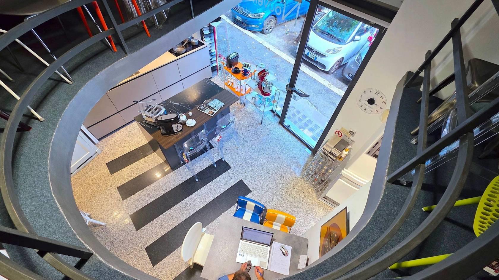 L’immobile, di 150 mq complessive, si sviluppa su tre livelli con showroom e deposito espositivo,