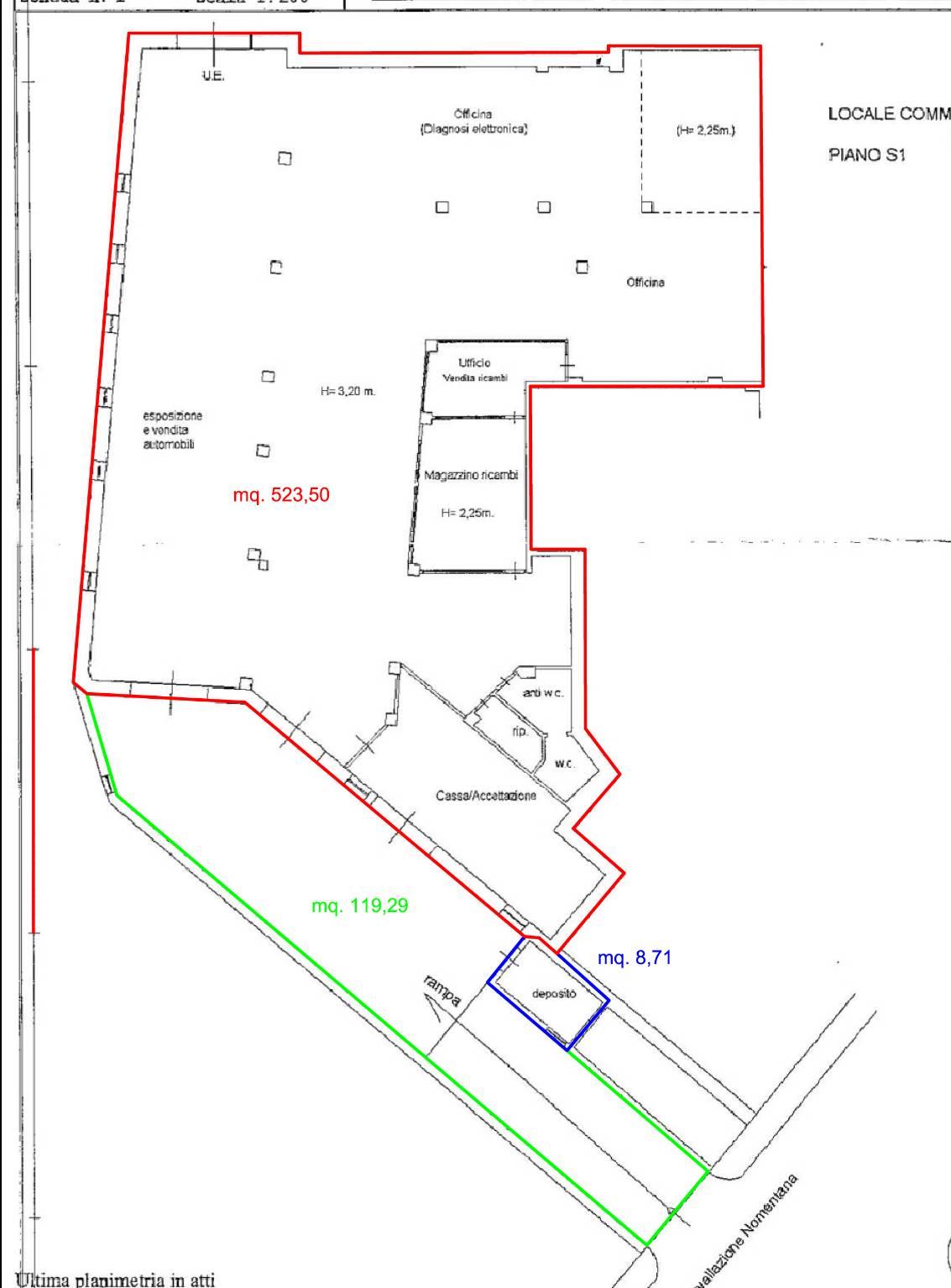 Eccellente locale (C6) di mq 523,50 oltre rampa di mq 119,29 carrabile ad uso esclusivo da Circonvallazione Nomentana , fronte Stazione Tiburtina. Secondo ingresso carrabile da Via Lorenzo il Magnifico. Il locale può essere convertito in D8 a seguito di presentazione pratica amministrativa . é presente servizio igienico.