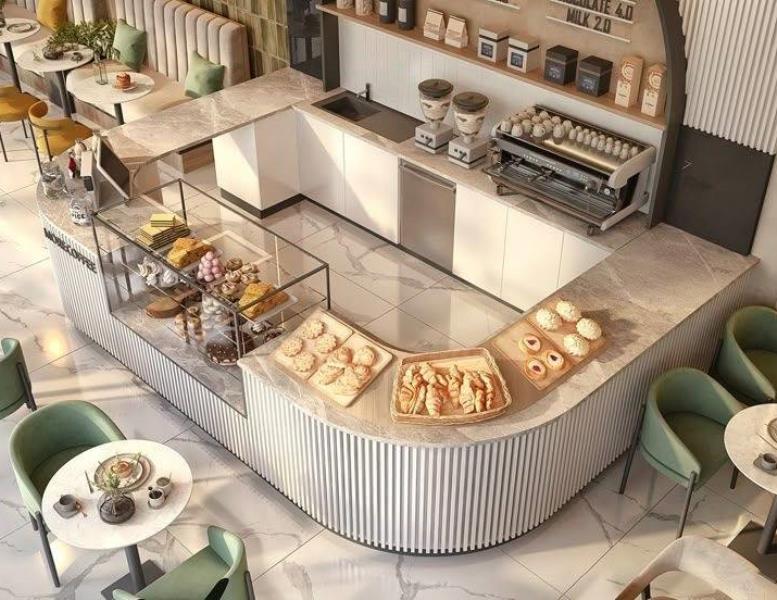 Entrando veniamo accolti da un ampio e moderno bancone attrezzato, suddiviso in zona caffetteria, vetrina per esposizione della gastronomia e della pasticceria, completo di retrobanco e zona loungebar .