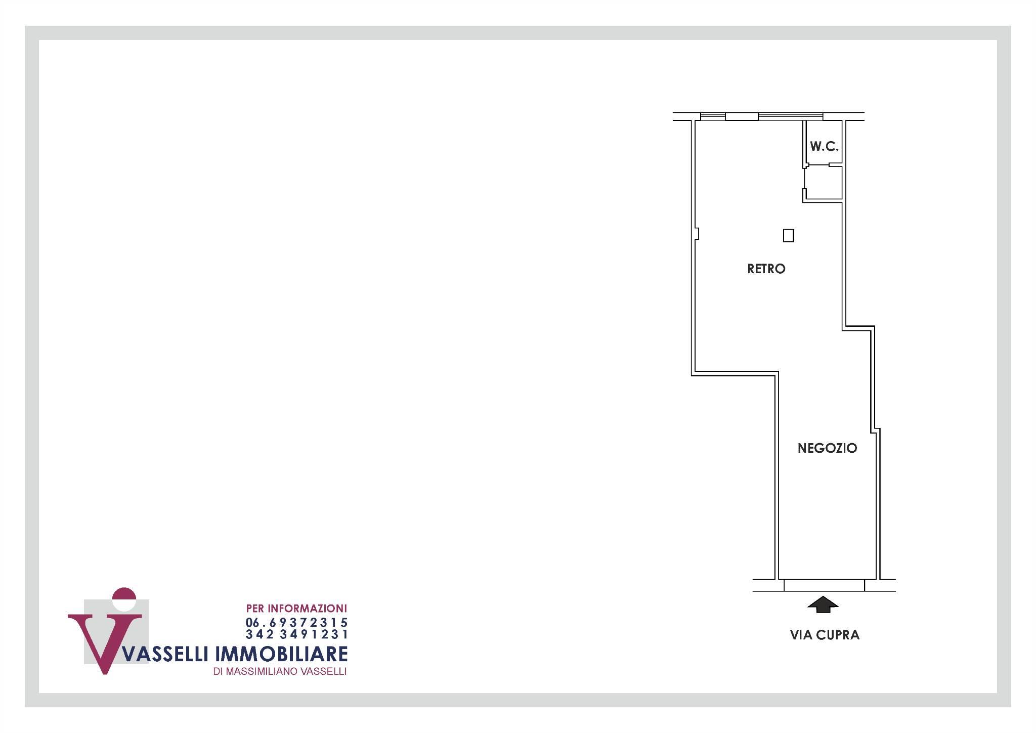 VIA CUPRA-Adiacente LARGO ANTONIO BELTRAMELLI-(VEDERE GOOGLE MAPS)- Proponiamo in VENDITA- LOCALE COMMERCIALE C/1 A REDDITO(€9.600,00 Annui),disposto su un UNICO LIVELLO con servizio ed una vetrina su strada. Ubicato a Pochissima distanza(5 minuti a piedi) dalla METRO B Stazione Tiburtina , Nuova Sede Direzionale B.N.L. Paribas ed a pochi passi dalla centralissima Via Tiburtina e da tutti i maggiori servizi Urbani e Commerciali di prima necessità. NOTE: Immobile proposto in collaborazione con Agenzia Solution Immobiliare.