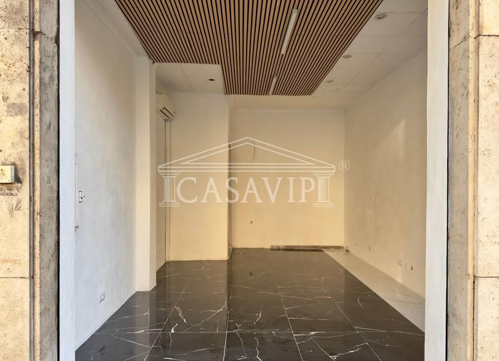 Il locale, dotato di ampia vetrina su strada e serranda elettrica, si sviluppa su un unico livello per una superficie di circa 22mq, dotato di bagno oltre cantina posta al piano seminterrato, con accesso dall’androne condominiale. E’ presente impianto di aria condizionata.