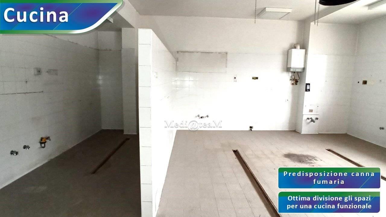 Il locale è dotato di controsoffitto tecnico con predisposizione per impianto di aerazione, oltre alla predisposizione per canna fumaria in cucina, servita da tripla finestra per una ventilazione ottimale.