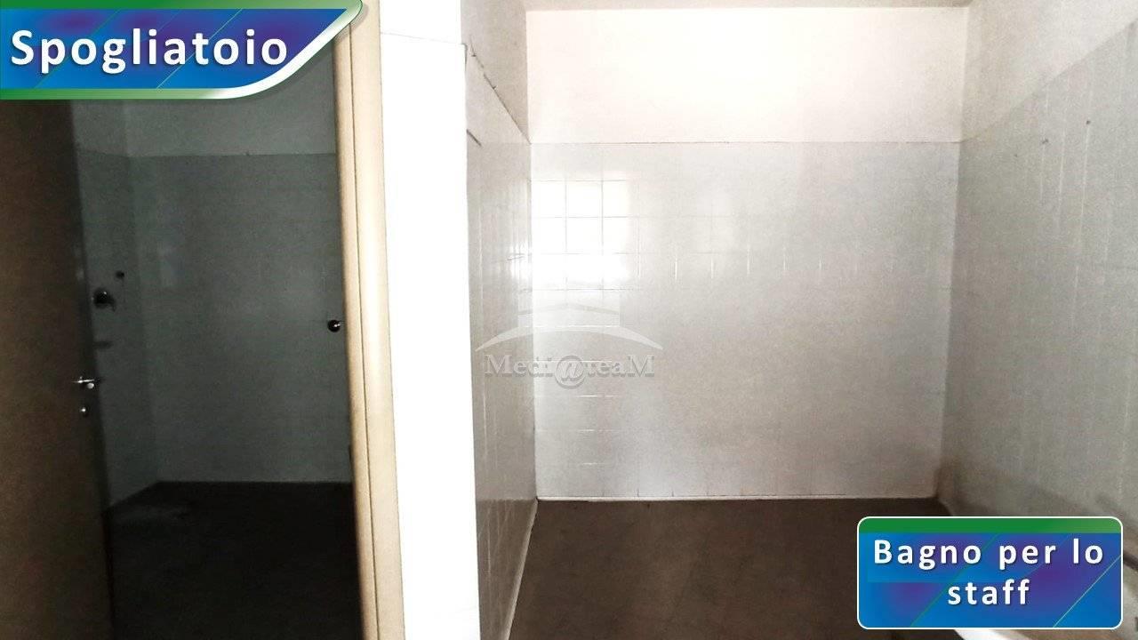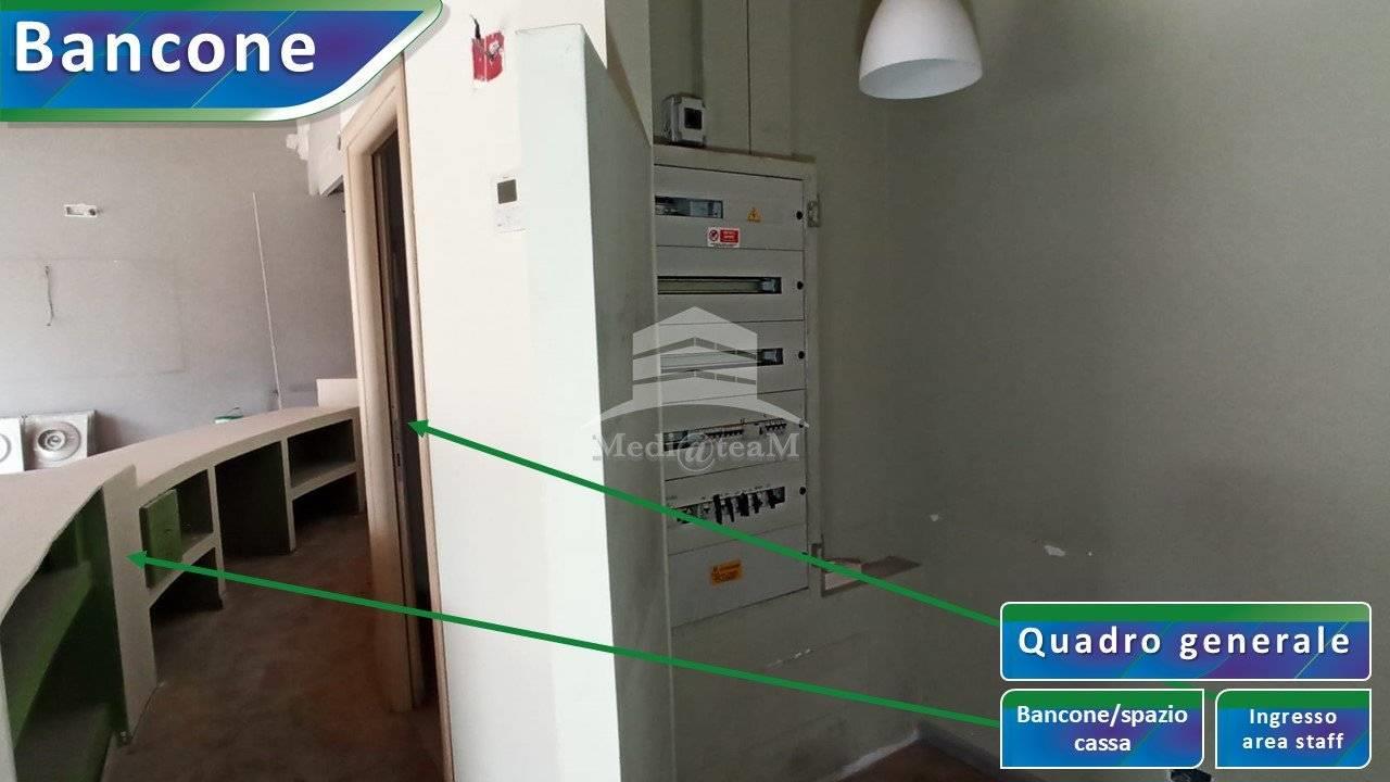 Alle spalle del bancone si accede alla zona staff, completa di spogliatoio e bagno di servizio.
