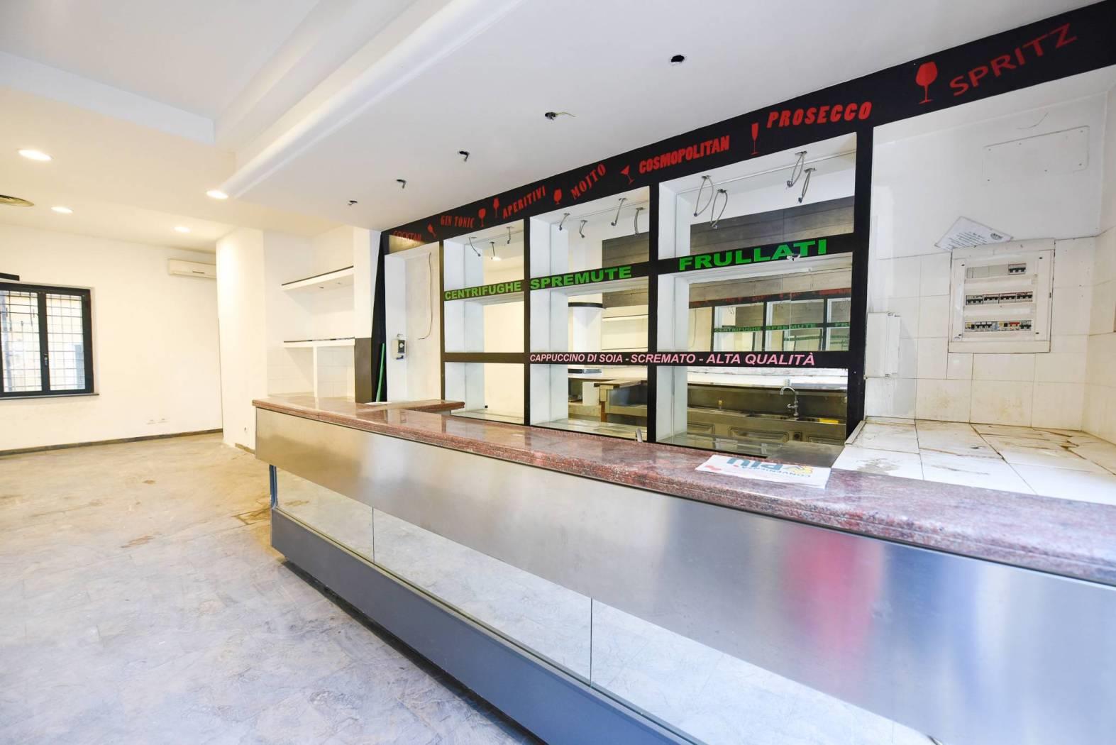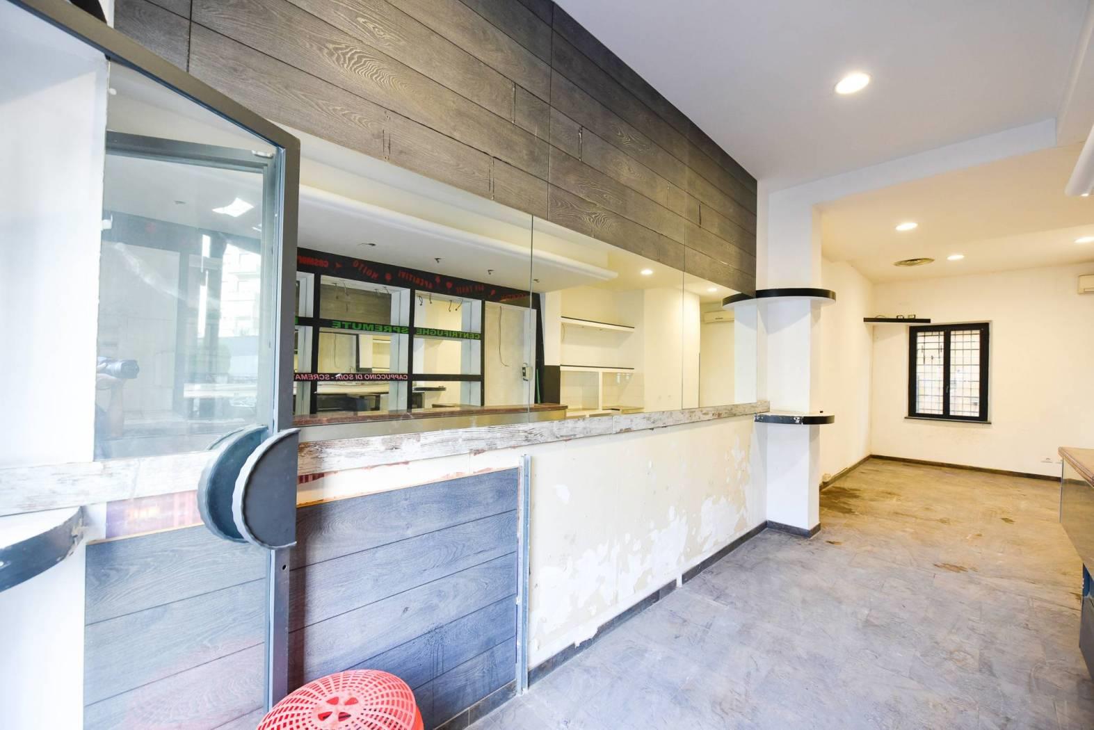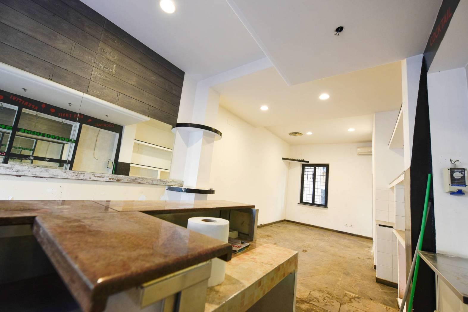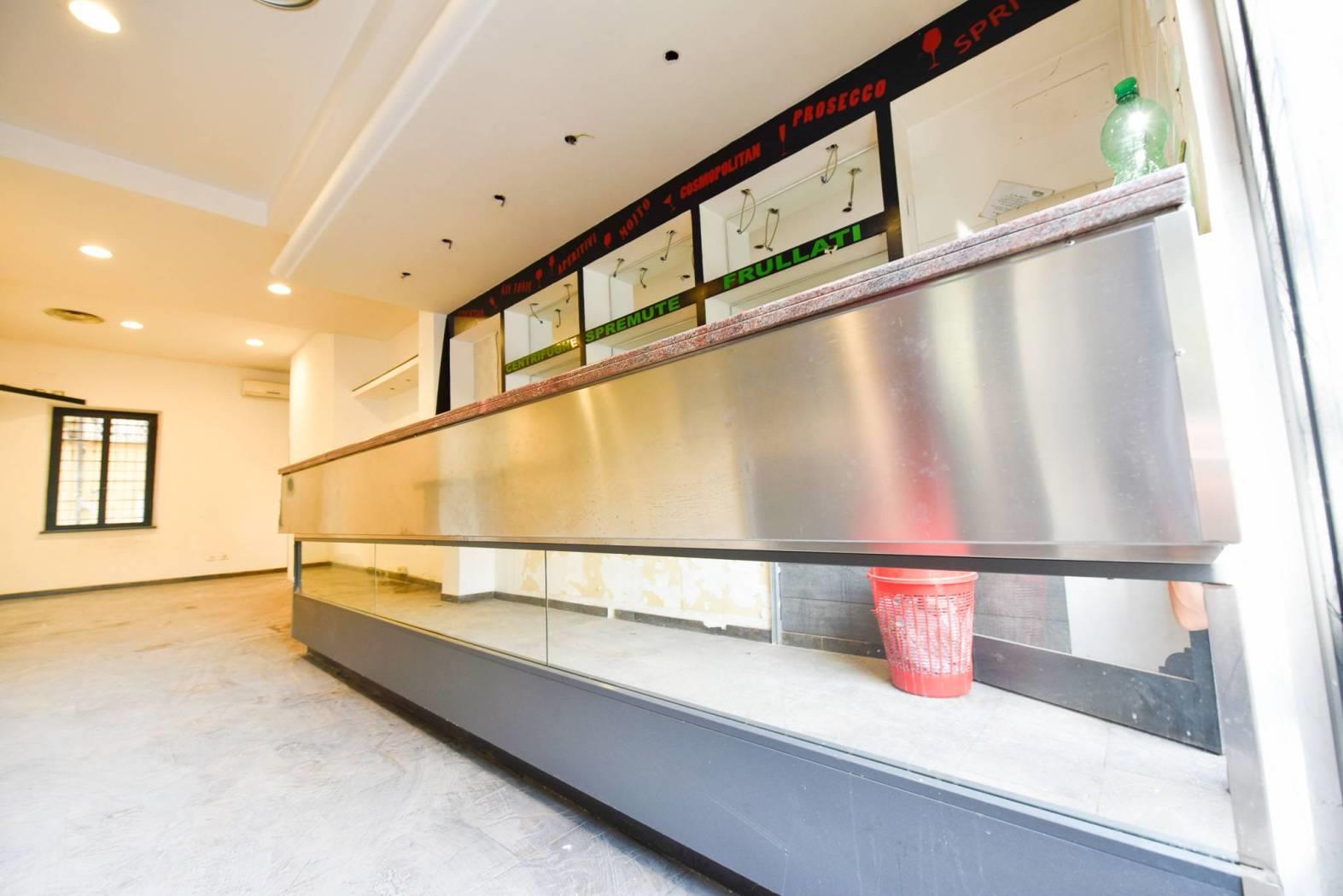 Al piano terra, con altezza di 3,35 metri, si trova un ampio ambiente open space con bancone bar, vetrina su strada, servizio igienico e vano scala di collegamento interno.