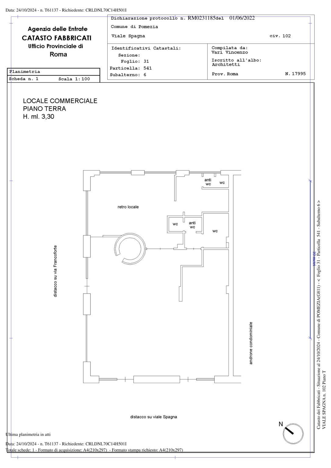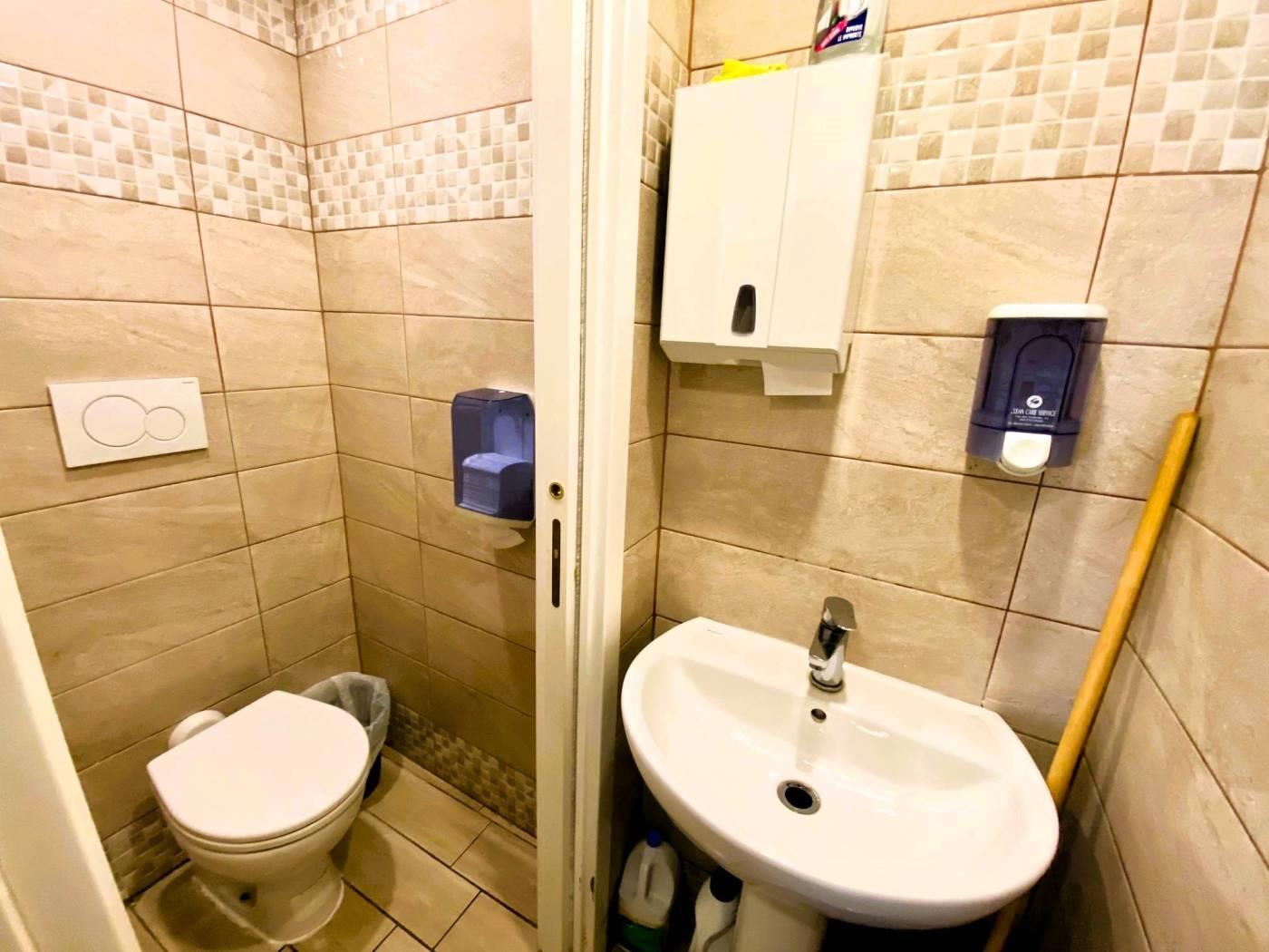 Il locale è angolare e ha quattro ampie vetrine, un ampio ambiente, un bagno per disabili, un ampio magazzino e due ingressi, di cui uno di servizio.