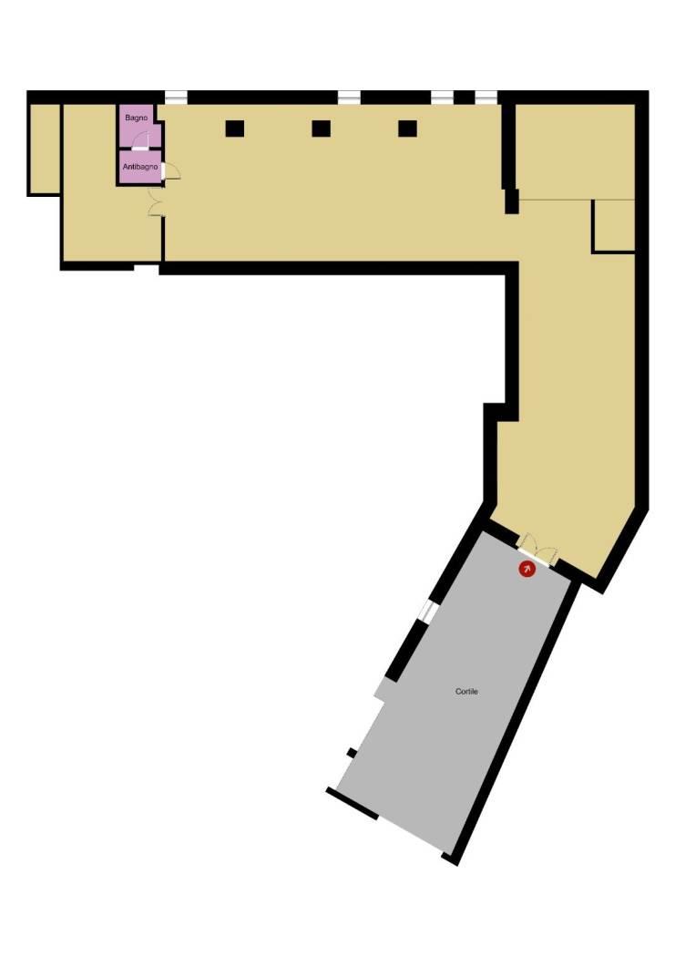 Il locale dispone di una vetrina su strada con entrata carrabile e spazio esterno di circa 40 mq. L'immobile è composto da due grandi ambienti e bagno. L'immobile è locato ad attività di mercatino dell'usato con contratto 6 anni + 6 anni appena avviato con rendita annua di circa 30.000€ .