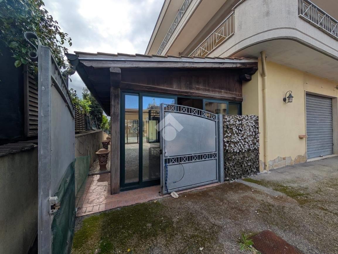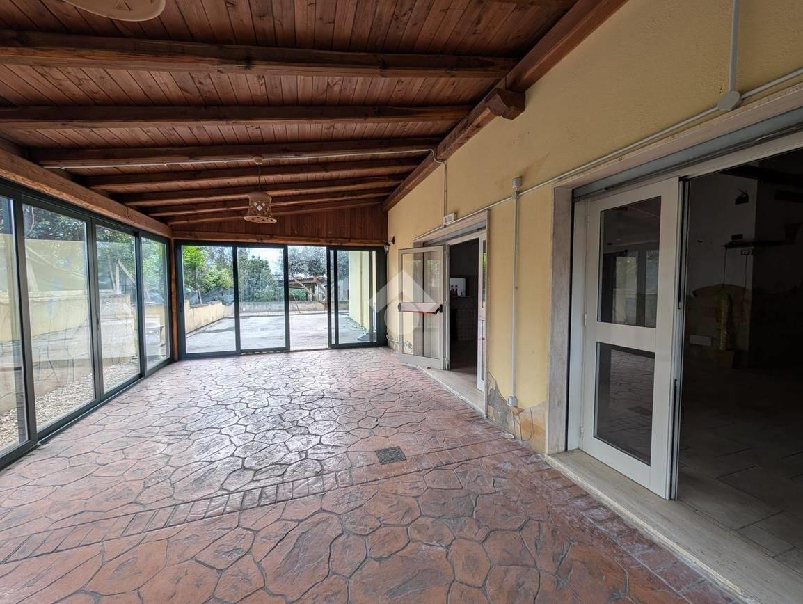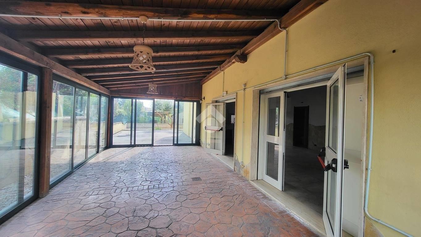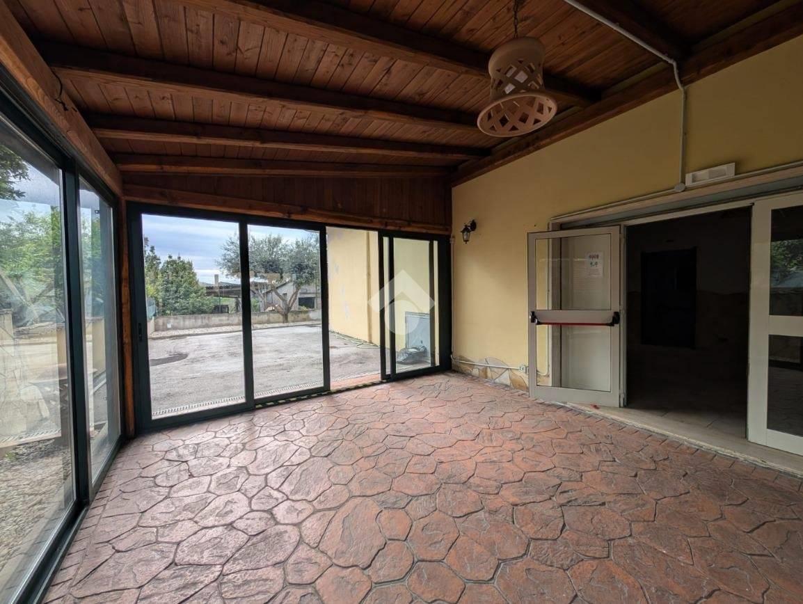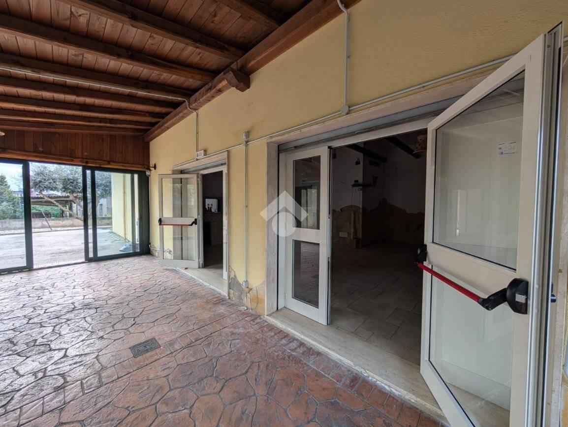 Proponiamo in locazione un locale commerciale di circa 140 metri quadrati, situato al piano terra, composto da due ambienti, veranda coperta e servizi igienici.