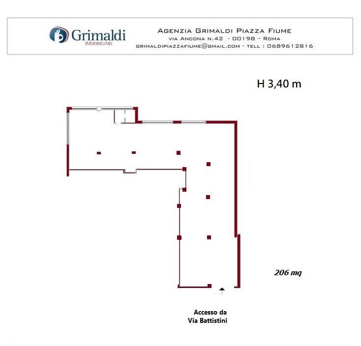 In zona Colli Portuensi, precisamente in Via Luigi Ronzoni, la Grimaldi Piazza Fiume propone in locazione un ampio locale di 206 mq , accatastato come C1, posto al piano seminterrato con accesso da Via Raffaele Battistini