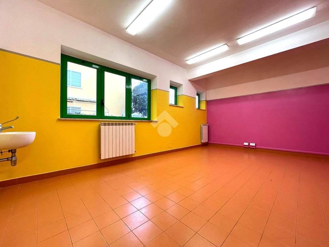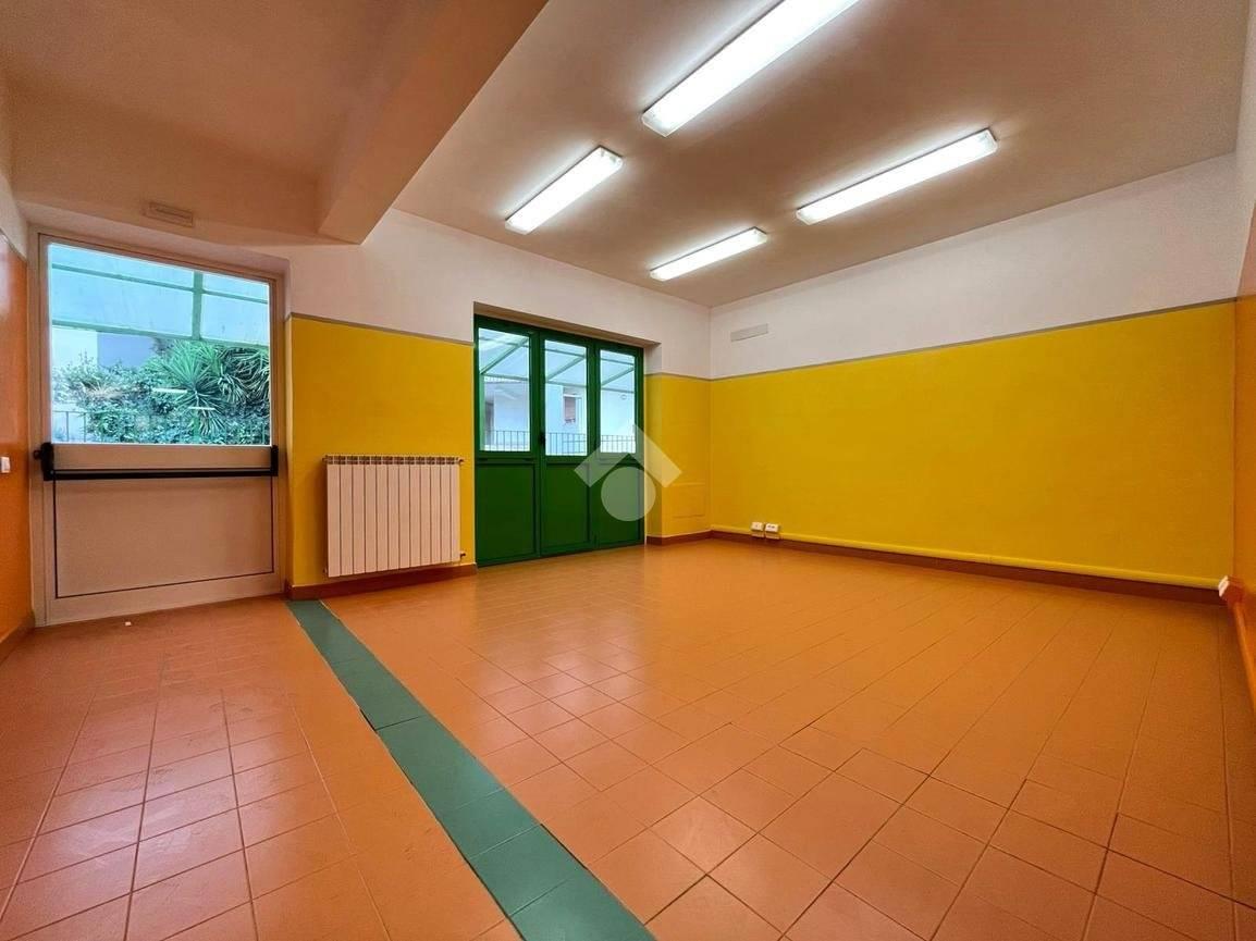 Proponiamo in affitto un locale di circa 400 mq, completamente ristrutturato, comprensivo di rifacimento degli impianti elettrico e idrico, situato al primo piano di un edificio che ospita al piano terra un asilo.