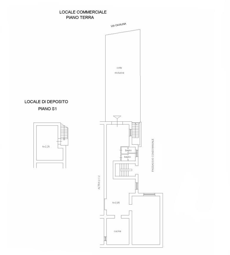La composizione interna include un ampio spazio per il negozio, un retro negozio funzionale, una cucina e due bagni, rendendolo ideale per diverse attività commerciali. Inoltre, la corte esclusiva antistante offre uno spazio aggiuntivo perfetto per accogliere i clienti o per eventi all'aperto.